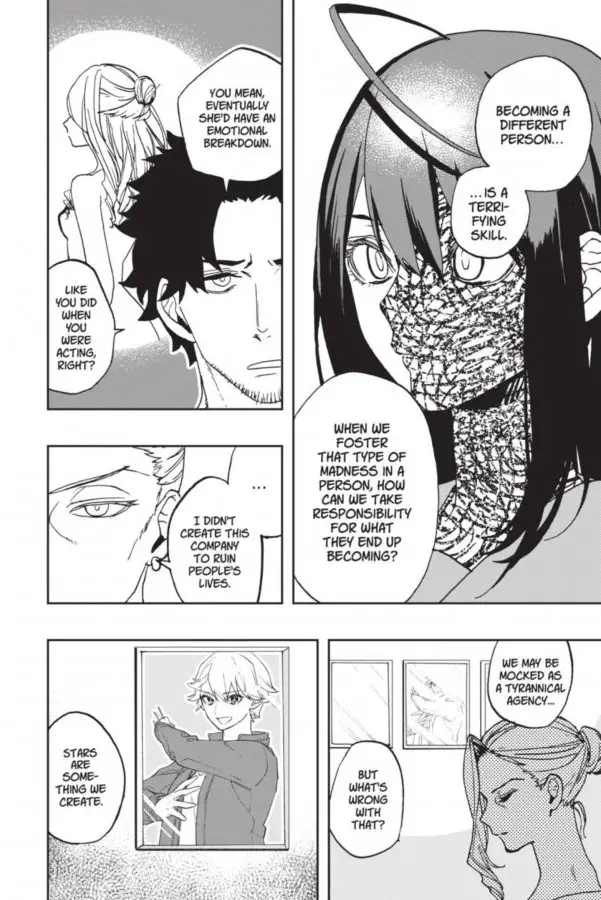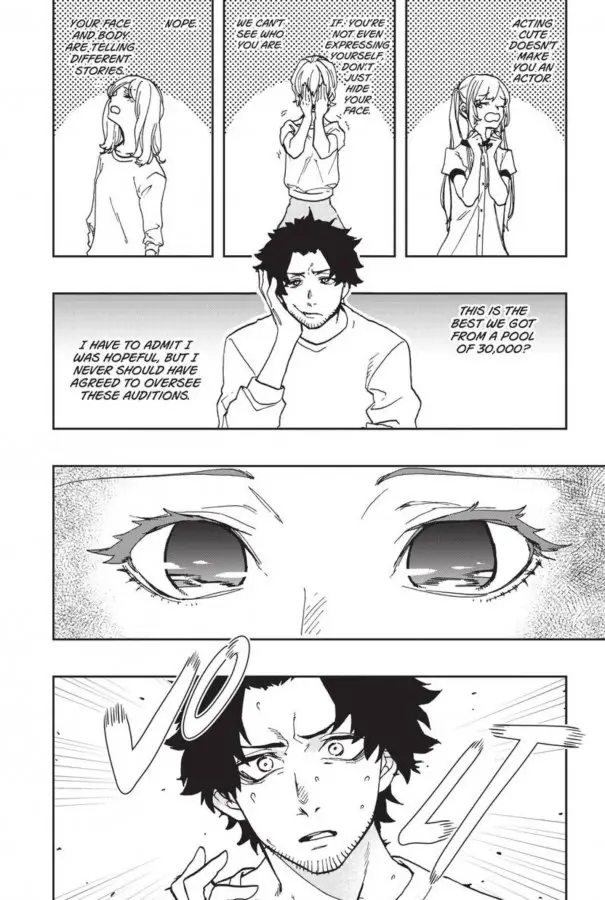 I think one of the only real flaws here is that it doesn’t show Kei’s daily life as much and just goes into the acting bits of the series. While the act of balancing her school life and acting life is mentioned in a few panels (and she consults her younger siblings in her big decisions), it’s not fleshed out as much as it could be here. In addition, the backgrounds for the first few chapters aren’t developed, with a lot of focus being on the characters and foreground instead. It’s not too noticeable (especially since those settings would be an audition room and a house), but still a bit of an issue. However, it’s a strong start for what’s bound to be a great manga run.