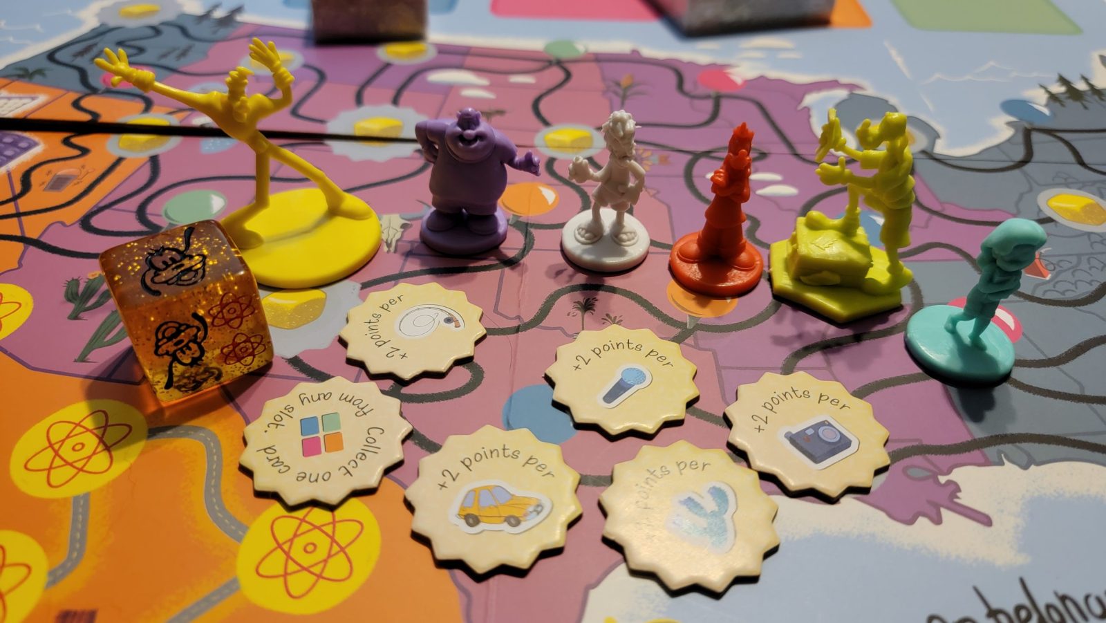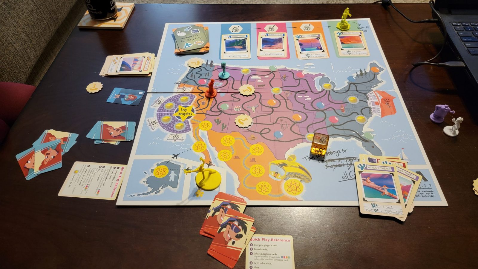 Once a player reaches LA, they choose a seat in the venue which awards points. The first player to reach the venue will receive the highest point boost, with each player who arrives after receiving a slightly lower point boost. Players will then remain in the venue and play as normal, aside from moving their figures, until Powerline reaches the venue. Once Powerline is at the venue each player totals up their cards, awarding additional points for meeting the criteria of each bonus token in their hand, and then the player with the highest point count wins.
