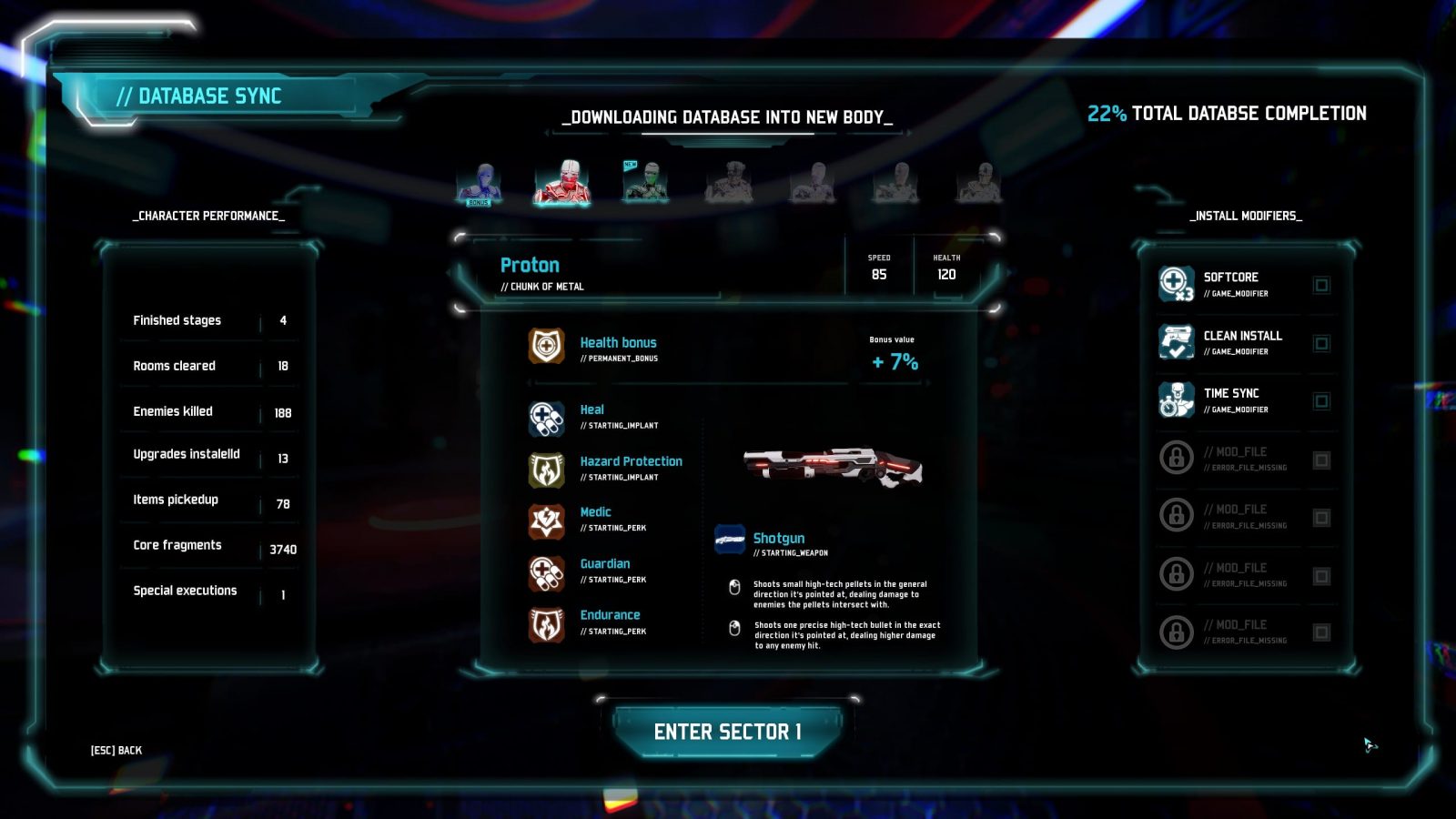 That being said, there is an exception to what I’ve stated about not keeping items you’ve unlocked. The only thing that you can keep are Modifiers, which attach onto Implants and Imprints and will carry over through your playthroughs. However, again, you will have to hope to get those Implants and Imprints with attached Modifiers each time you run through a stage.