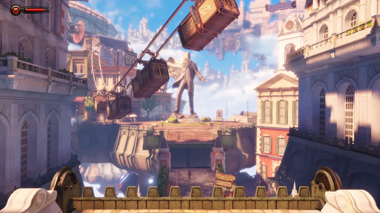 The trio of games run at 1080p at a serviceable, stable 30 frames per second, save for BioShock Infinite — its visuals proving to be too much for the Switch to handle. Frequent frame drops punctuate the experience, despite rock-solid frame rates in the remastered versions of BioShock and BioShock 2. The underwater vistas of Rapture and the high-flying set pieces of Columbia look incredible in handheld mode, despite the lower resolution. It’s only when docked that players can easily spot the shortcomings of the Switch port. Coming off of the PlayStation 4 and PC versions of the collection myself, the rough anti-aliasing and textures took me a while to get used to. Such compromises are par for the course, but the gameplay remains as compelling as ever.