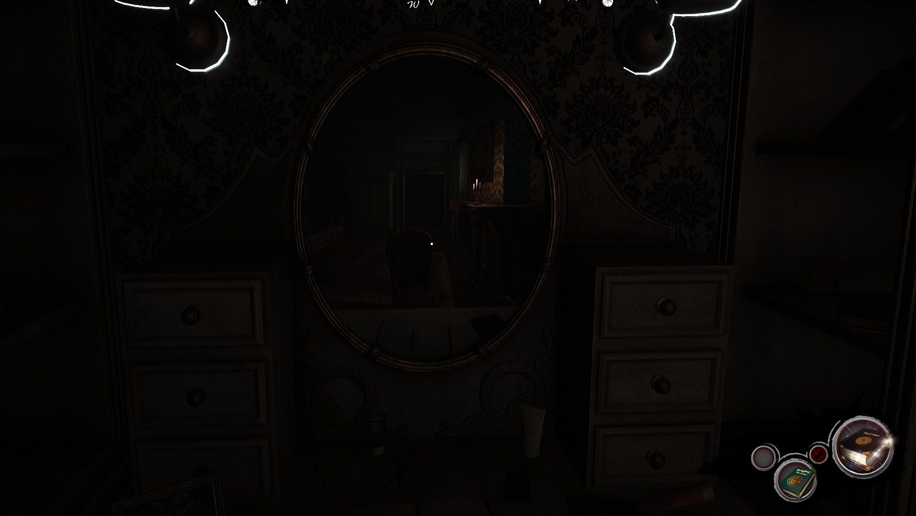 The first thing you will notice is that the Curse of Anabelle is really ugly. It is also really dark even with a flashlight that they quickly ditch. Mirrors aren’t actually mirrors: I’m pretty sure they just put a mirror image of the environment in a mirror frame and called it a day. I’ve never seen this done before, and it’s terrible in practice. The character models are horrific, and not in a good way. This makes the decision to have incredibly long zoom-ins on the characters’ faces even more confusing than it would be if the models looked just decent.