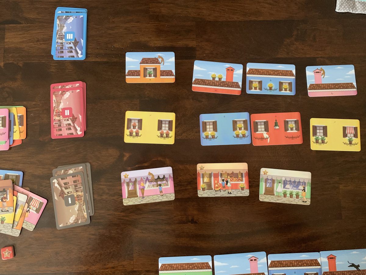 Walking in Burano is a straightforward game to understand but has a lot of strategy underneath the surface. It might seem overwhelming trying to decide what card to choose first. I’ve found that starting with one characteristic at first is best and then adapting your strategy to incorporate other attributes as the game goes on. One game you may decide to try a strategy with street lights and cats, while another game you focus on plants and chimneys. Which one you choose to focus on will depend upon what cards are available when it’s your turn to draft. Speaking of, the aesthetics of the game are beautiful, and the artwork and design of the cards and the characters are amazing.