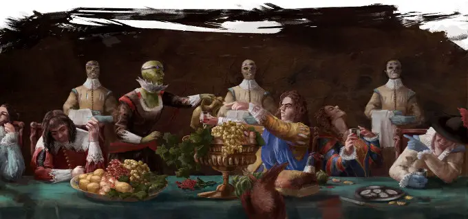 The book’s art is as sparse as it is inconsistent. Art is usually one of the larger parts of a book’s budget, so it’s understandable that Rational Magic chose to place its focus in other areas. The book’s style mixes hand drawn portraits and a few larger paintings with some random renaissance-styled pictures in an attempt to set the mood. If the writers wanted to make use of period art, they could have done so more creatively and consistently, leaning on the weight of existing paintings for NPCs or settings. Instead, the inclusion feels uniformly random. You’ll find in a page a random painting from the renaissance with no clear connection to the text nearby, where they could have used public domain work to set a consistent tone and mood. The maps, on the other hand, are fitting and usable, and will go a long way to helping you structure your game in a physical space.