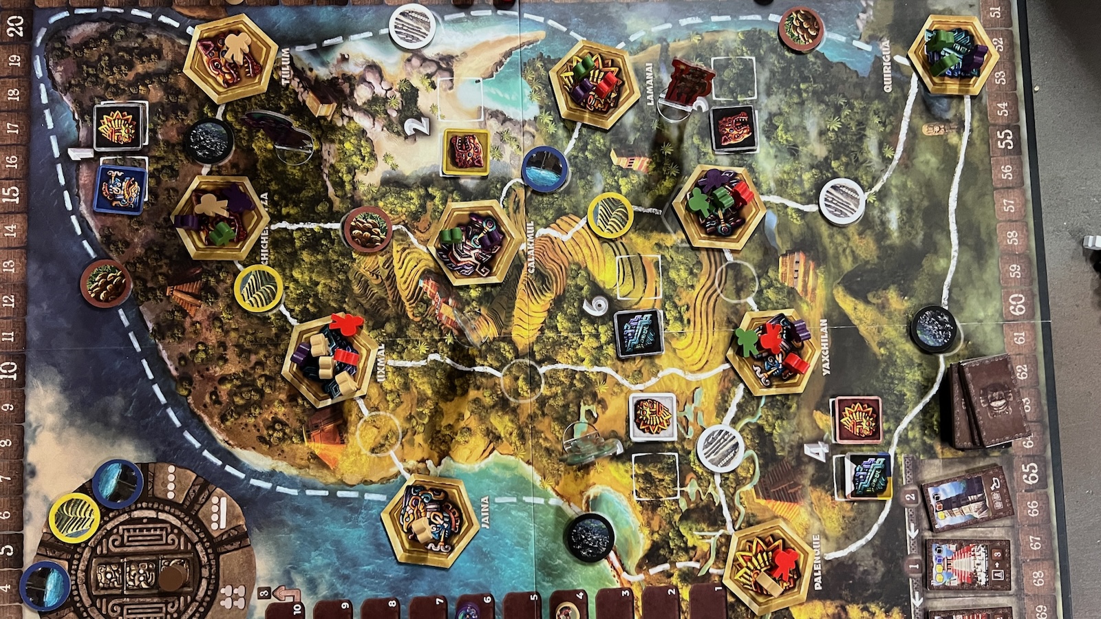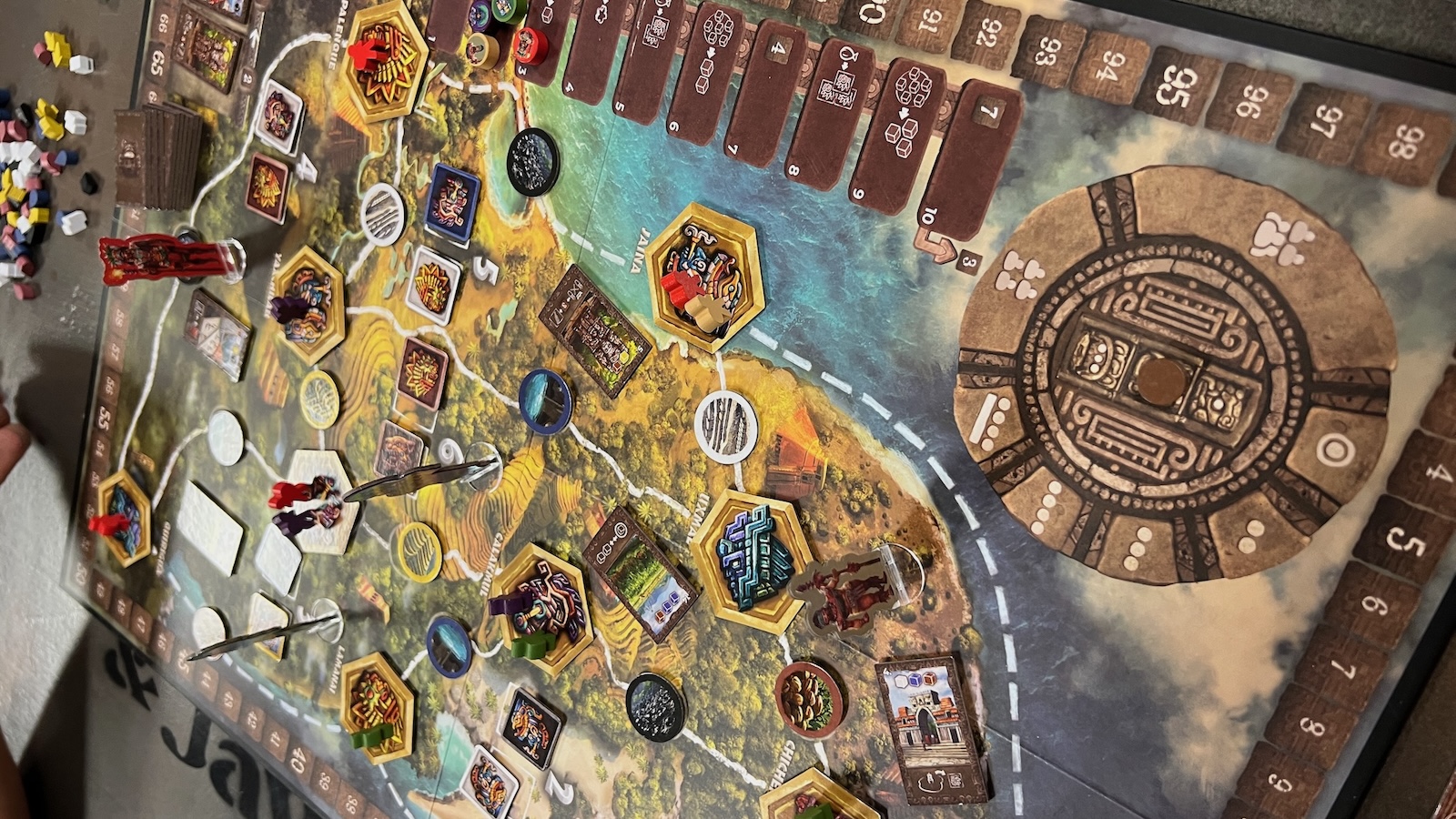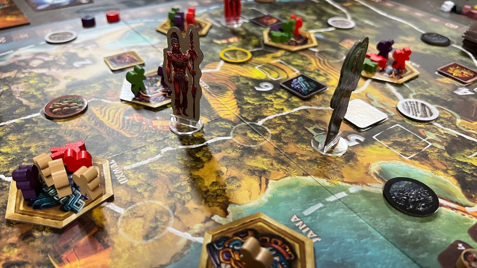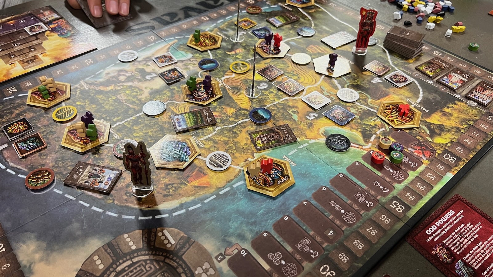 - Jaguar God of the Underworld: allows players to remove workers from the board to gain fame and advance on the Might Track.