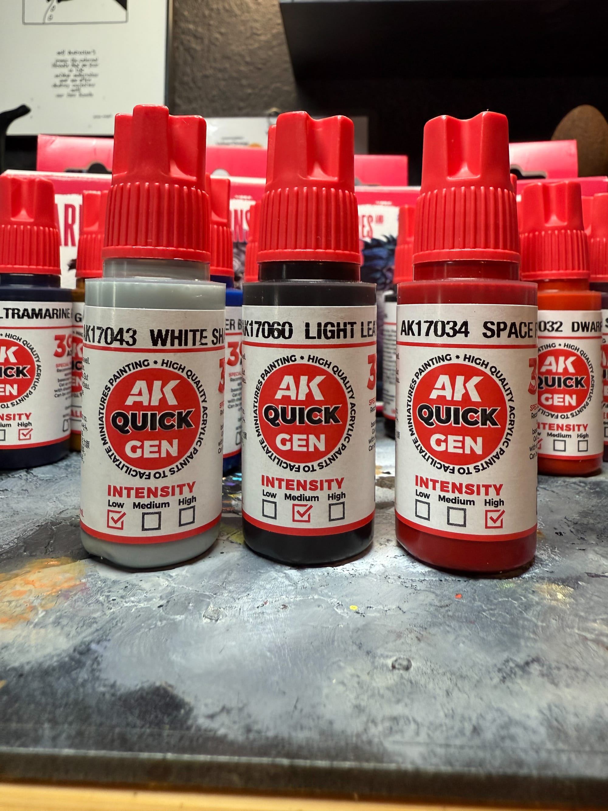 And not to mention the amount of product out there. GW, Army Painter, Green Stuff World, Vallejo, Scale75 all have rich lines of contrast style paints with various, confusing names. Speedpaint, Contrast, Dipping Inks, Xpress Colors, Instant Color…and now, we have another one. AK Quick Gen.