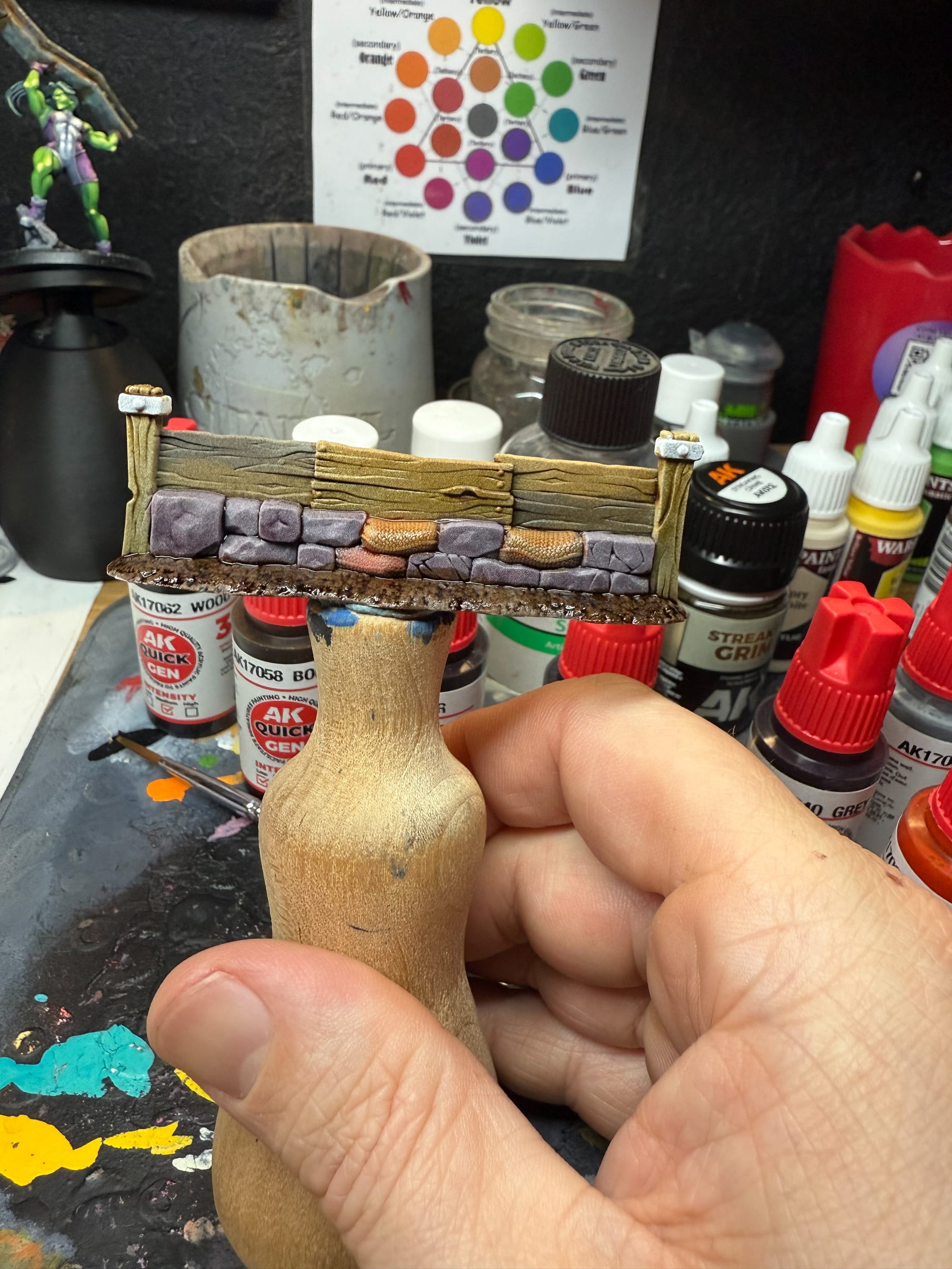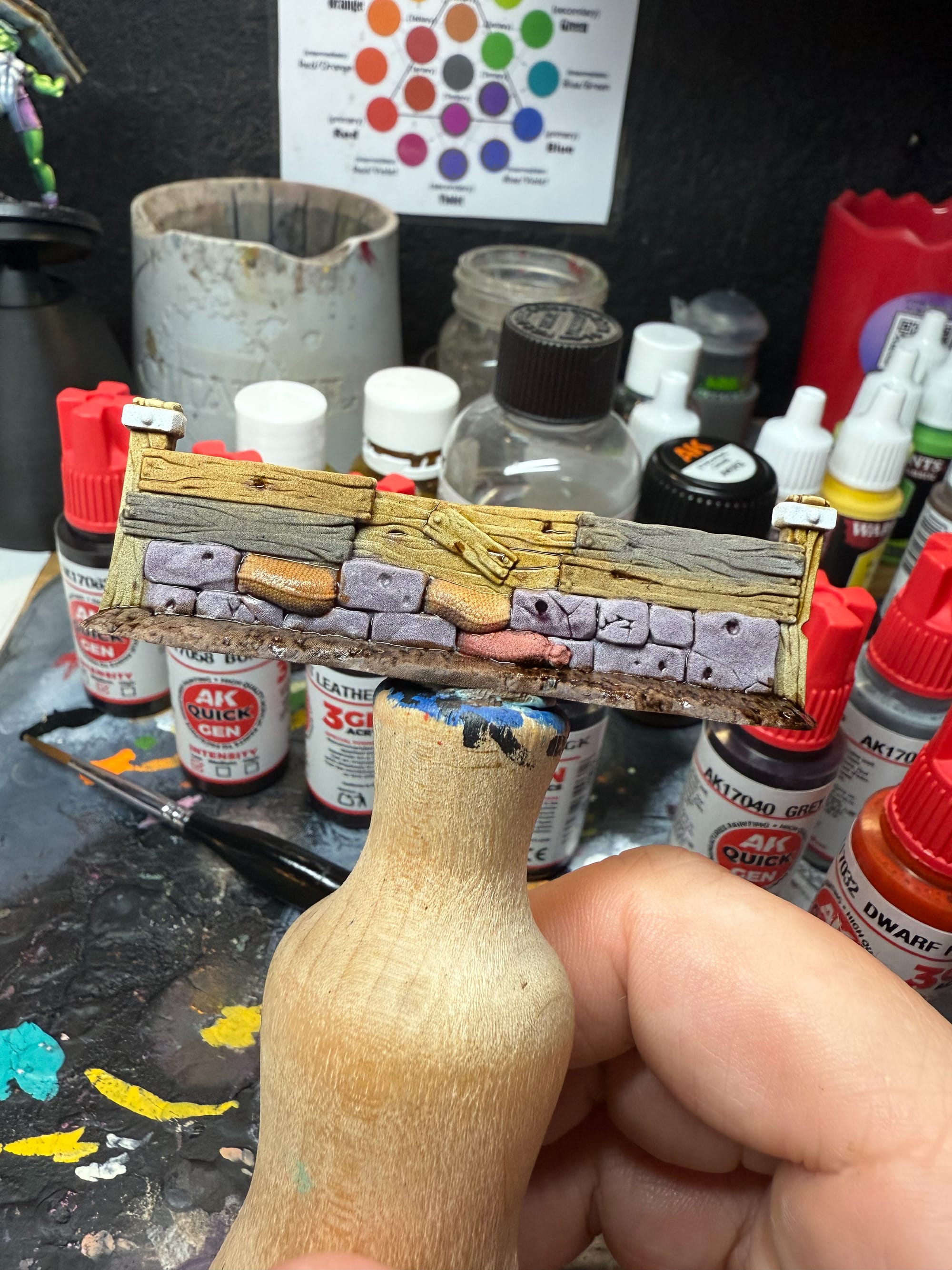For my first test, I took some scatter terrain from Warmachine that I’ve been sitting on for a minute. I figured if I can’t get these done in the span of an hour, what am I even doing in this hobby? I chose a selection of browns including Wood, Bone Brown, and Light Leather, along with the strangely named “Gray Shadow”, and the only metallic I was provided, Gold.My first take with these paints is that they fulfill the promise. All of the wood you see in the photos was done with one pass, and blended perfectly. Wet blending with these paints is generally a risk due to the pigmentation of the paint but because of the labeling, I was able to guess at what the final result would be, and I was thrilled. The woods blended together and left a pleasing matte finish.
