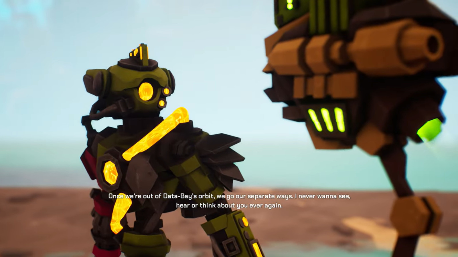 The story follows Exe, a mercenary, and a drone named Shipset. The two meet at the start of the game and although Exe wants nothing to do with the talkative Shipset at first, they work together to escape their adversaries. Soon, the two are recruited by the leader of their world to stop the scheme of a rogue scientist named Evilware, who wants to use the time-altering Artifact to control the universe. (Well, it’s more like Exe is recruited; Shipset is just along for the ride.) The plot is about as basic as it sounds, but it is serviceable for a sci-fi adventure like this.
