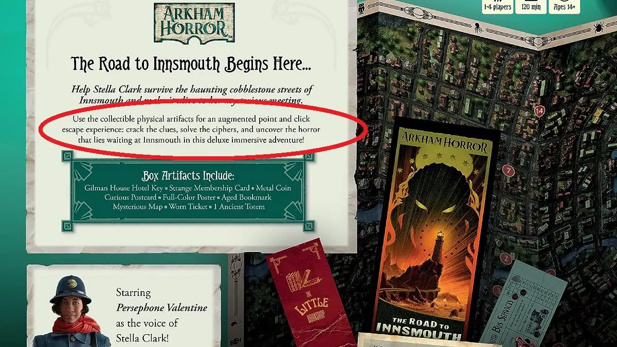 The Road to Innsmouth is an online multiplayer point and click adventure game. With that out of the way, I recommend it. The deluxe edition box contains cool Arkham Horror themed items, but are ultimately unnecessary for the game itself. The Road to Innsmouth is something unique in the tabletop world, but I recognize its potential to confuse people about what the game actually is. Whether in person or online The Road to Innsmouth offers a fun puzzle solving experience for up to four people that captures the spirit of live escape rooms.