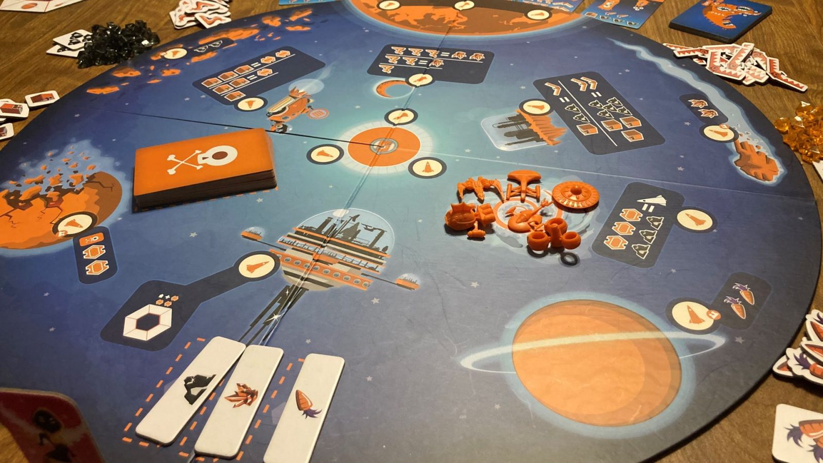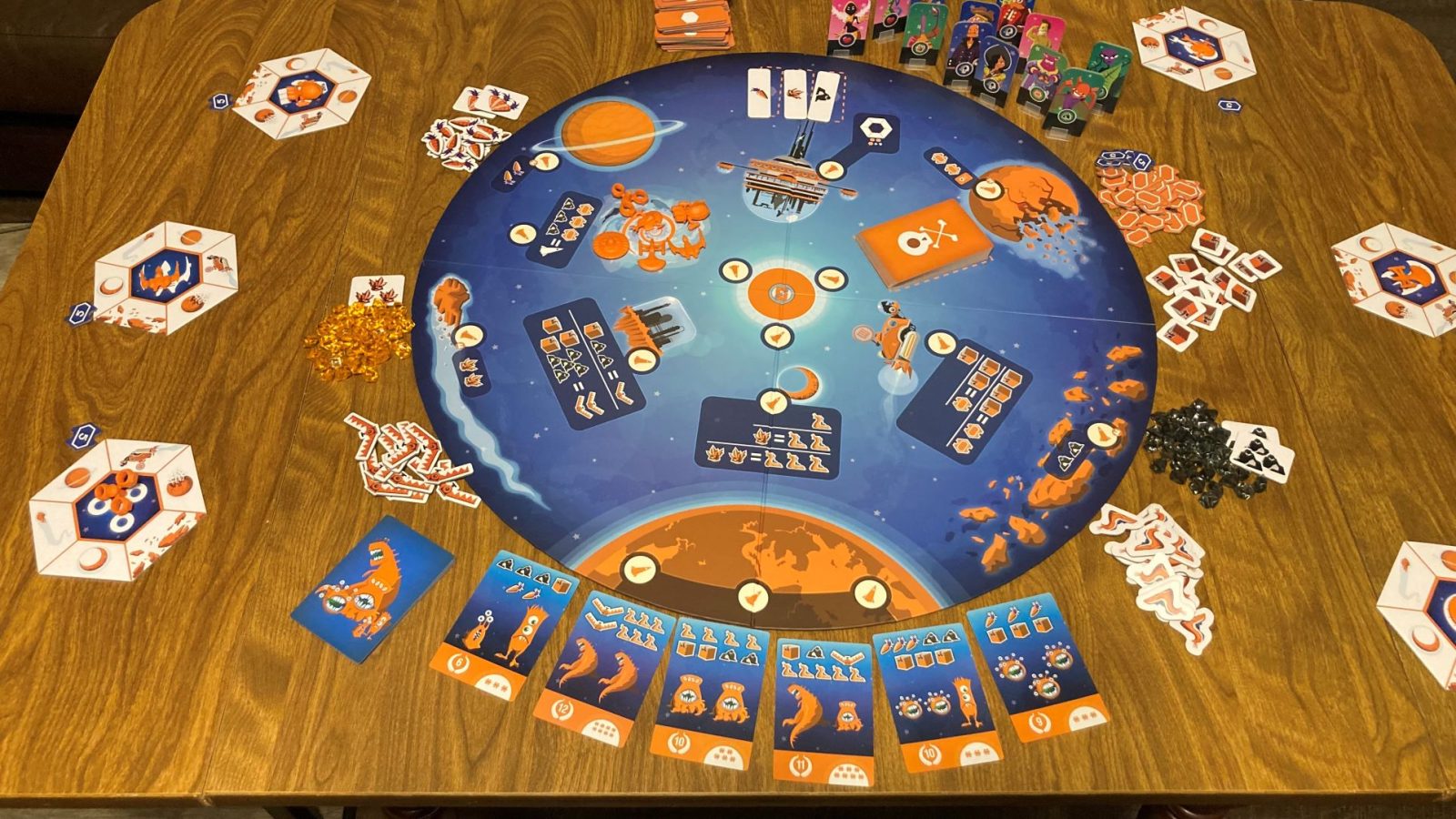 Asking For Trobils isn’t without its flaws, though. The table creep is real, folks. You need room for the large circular game board, player areas consisting of ship cards and ships, personal resource stashes, and acquired Trobil and RiffRaff Cards, plus all the available resource piles.