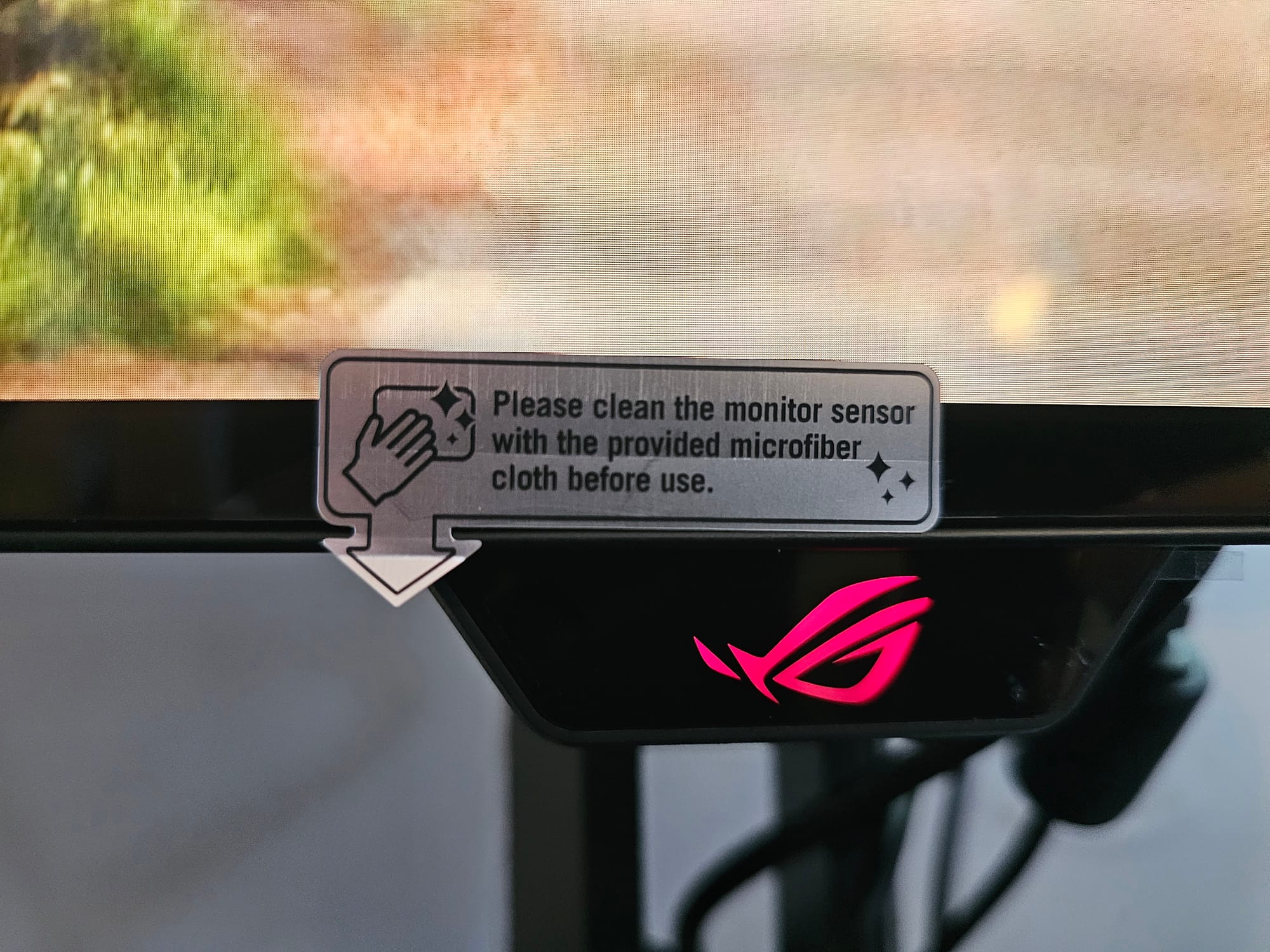Let's start with the packaging. A premium monitor deserves a premium package, and Asus delivered. Beyond the protective styrofoam encasement, there are a few nice touches. Just about every smooth surface that’s meant to be seen comes with a protective layer to peel off, from the power supply to the VESA mount to the screen, and even the logo on the OSD Menu tab on the bottom of the monitor. Included in the box is a small canvas bag with a metal mesh window to hold all of your cables and the included microfiber cloth. I have to commend ASUS on including the cloth, as well as the sticker requesting that users clean the monitor’s sensor (which we’ll get into in a minute) with it before use. On the note of stickers, a whole two sheets of them come with the monitor. I’m not really a sticker guy, but it’s another nice touch. However, the most important sheet in the box is probably the warranty card for the monitor’s three-year protection plan, which provides dark dot, light dot, and burn-in coverage.