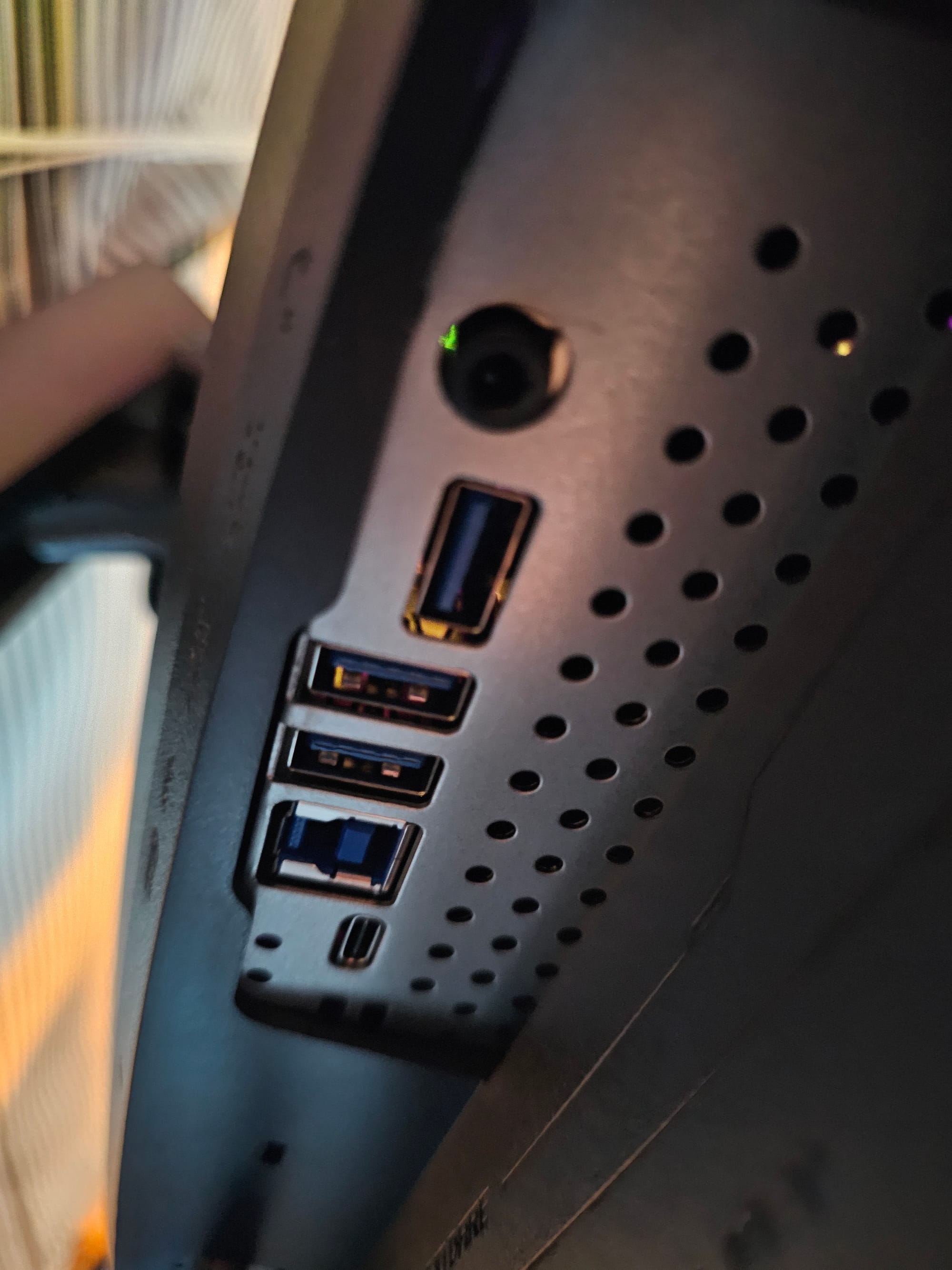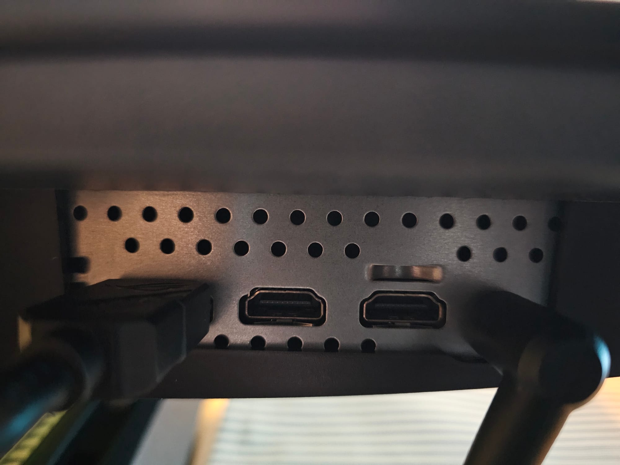 The ports, the base, and the reflection of my lamp in the TrueBlack Glossy OLED display.