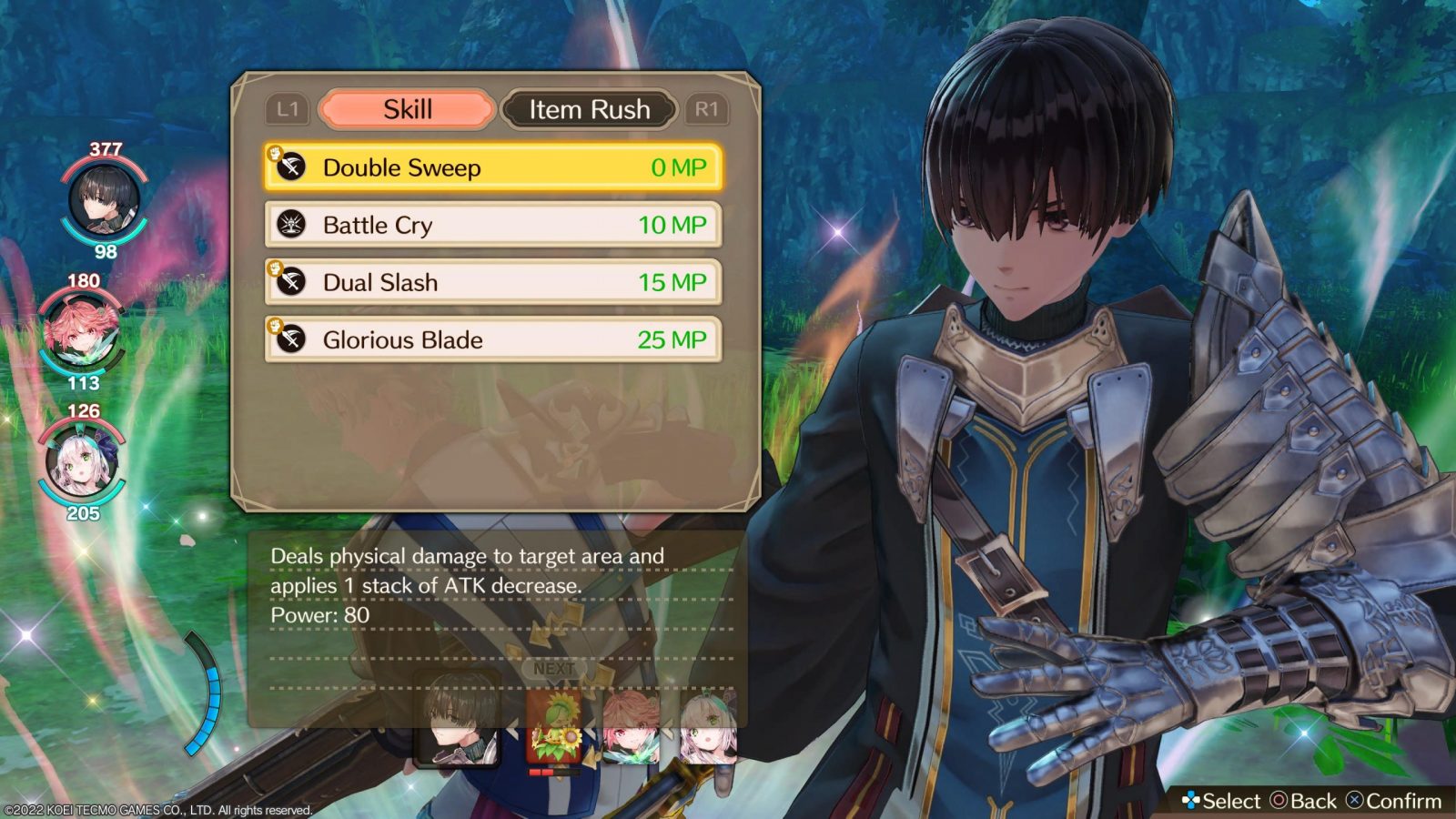 Up to three party members can be active in combat at once, and each have their own strengths and weaknesses. Sophie is a skilled magic user and can cast buffs on the party, while Platcha and Alette can dabble in some magic but focus on physical attacks. Turn order is displayed at the bottom of the screen, and characters are able to attack, defend, use items or skills, or run away on their turn. Abilities include spells or special attacks that use MP and can target one or more combatants. Along with normal attacks, you’ll be using these pretty frequently to get through most battles. Thankfully, you can speed up battles up to 2x by pressing in the left stick if the repeated animations become annoying. As you fight, you’ll build up a gauge in the bottom left corner next to the commands. Using a segment of the gauge allows you to swap out a party member from the reserves without using a turn. When selecting an action, you can press L1 to attack in tandem with a reserve member, each using an ability at a reduced cost. This allows you to put pressure on defenseless foes, especially once shields become more common and harder to wear down. Conversely, when an active character is about to be attacked, you can swap them out to have the incoming member adopt a defensive stance and take reduced damage. You have to constantly manage all of your party members to be effective in battle, which keeps things fun and active in what’s a relatively easy game.