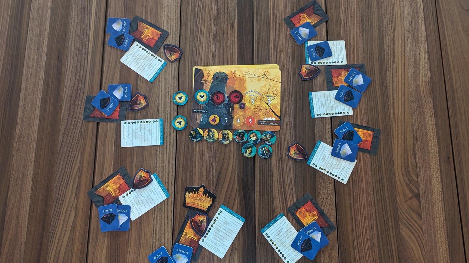 The core gameplay of Avalon is pretty simple. There are two teams: The Loyal Servants of Arthur vs. The Minions of Mordred. The loyal servants will not know who their teammates are at the start of the game while the Mordred minions will. This is balanced out as there are more loyal servants than Mordred minions and the loyal servants will have to determine who they can trust as the game progresses. Each round a rotating team leader will choose a set number of players to go on “The Quest” for the round. The exact number required depending on the player count and specific round. Once the team members have been chosen, all of the players will vote on whether or not that team should actually go. If a majority of players vote yes, then the team continues on to the next phase. Each team member is given one success and failure card. Then each team member secretly passes one of those cards to the current team lead. Loyal servants can only play success cards, while Mordred minions can play either. The team leader shuffles these cards and then reveals them. If every card is a success card the quest is a success. If any cards are a failure card then the quest fails. The loyal servants want to succeed three quests while the Mordred minions want to fail three quests. The first to do so wins the game. There’s a bit more rules, but this is the general flow of the game.