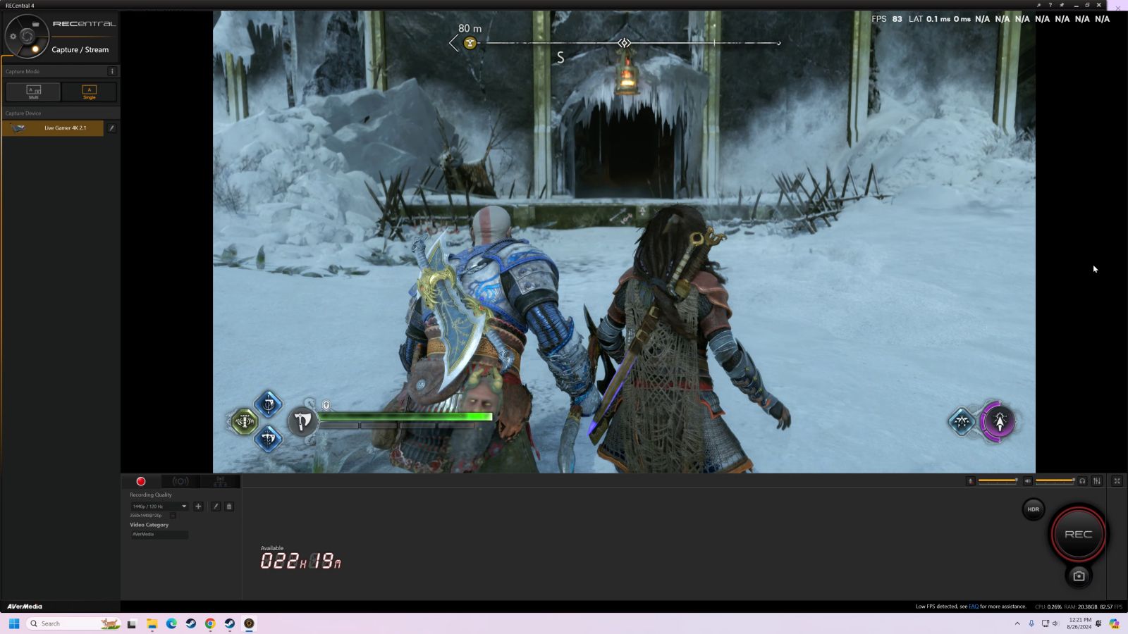 Now that we’ve got a lesson in HDMI specs, it’s fair to say that capture systems have been lagging behind consoles for a while. The PlayStation 5 and Xbox Series X|S launched four years ago, but got 120Hz support in April of 2021. Until capture units embraced HDMI 2.1, however, 4K/60 was the best you can do. Now, that’s no slouch, as you’ll see in the capture below, but being able to capture it as the developer intended is a whole different story. Let’s look at what this card is capable of delivering at 4K/60 with a peek at Stellar Blade on PS5 in Performance Mode. Before we do, I’m double-capturing, showing the game in motion, while also showing the process of capturing it – essentially capturing the capture of the capture. I sincerely doubt that it’ll affect anything as my PC has more than enough horsepower to process the capture but what you’re seeing is AVerMedia’s RECentral 4 running to capture the output from the PS5, with NVIDIA’s FrameView displaying framerate in the corner, and the output of all of that being captured by NVIDIA’s capture app. Let’s start with Stellar Blade as it requires some pinpoint timing to do a perfect parry of the critters you encounter. I’ll be using the Performance Mode which allows the game to run at 60fps at 1440p.