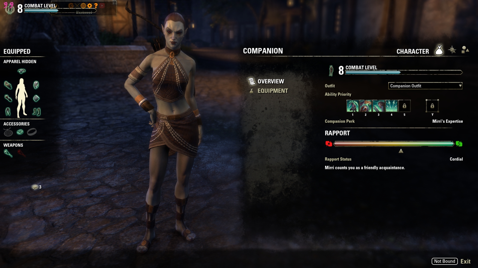 The main attraction with Blackwood is the introduction of Companions, who will fight by your side and help you along with your adventures. There are currently only two companions in the game right now, but the developers have not ruled out adding more. You obtain them by a short quest which you can complete in about twenty minutes, give or take. They each have their own skill lines and equipment, and are fully customizable. You can also equip them with any outfit you own, as well as any mount you own. You can take them into dungeons with you, but you cannot bring them into Trials or PvP.