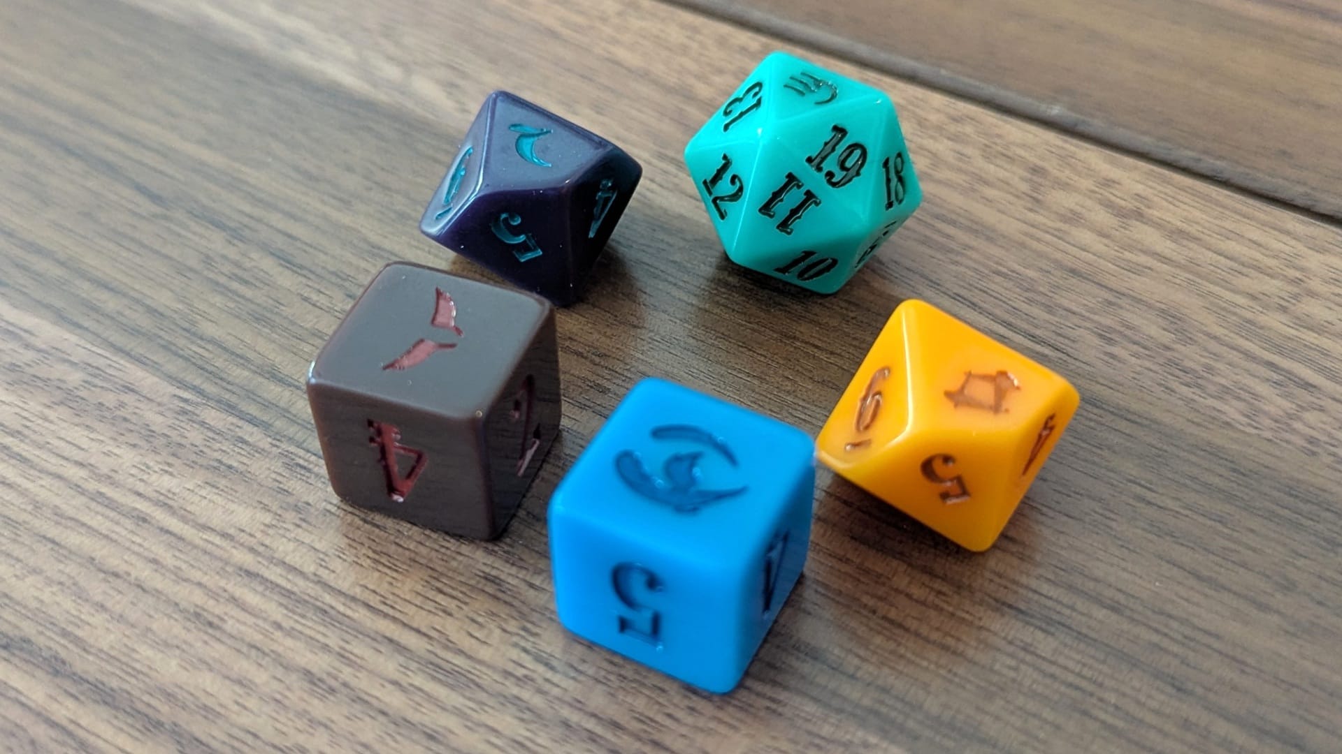 The five Tarkir-themed dice are good, but these were the items I was a little disappointed with. Don’t get me wrong, these are nice dice. I appreciate each clan symbol being the high value too. It’s just when you compare them to the other items included, these seem kind of…plain. If these dice shared the dragon scale theme that the +1/+1 tokens have, that would have been perfect. Perhaps I’ve been spoiled by all the fancy dice the RPG world has to offer. (Also, orange seems like an odd color for Abzan.) Even with this criticism, these are still quality dice.