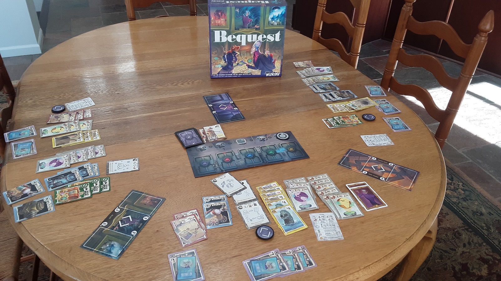 I’m sure that Wizkids wasn’t following my train of thought when they themed Bequest around supervillainy, but it really is a perfect metaphor for this game. When I first played Bequest, I was legitimately feeling like it may be one of my new staple filler games. But, after some more plays, just like how the hero will find the chink in the villain’s armor and win the day, I couldn’t help but find some fatal flaws that would keep this on my shelf at home.