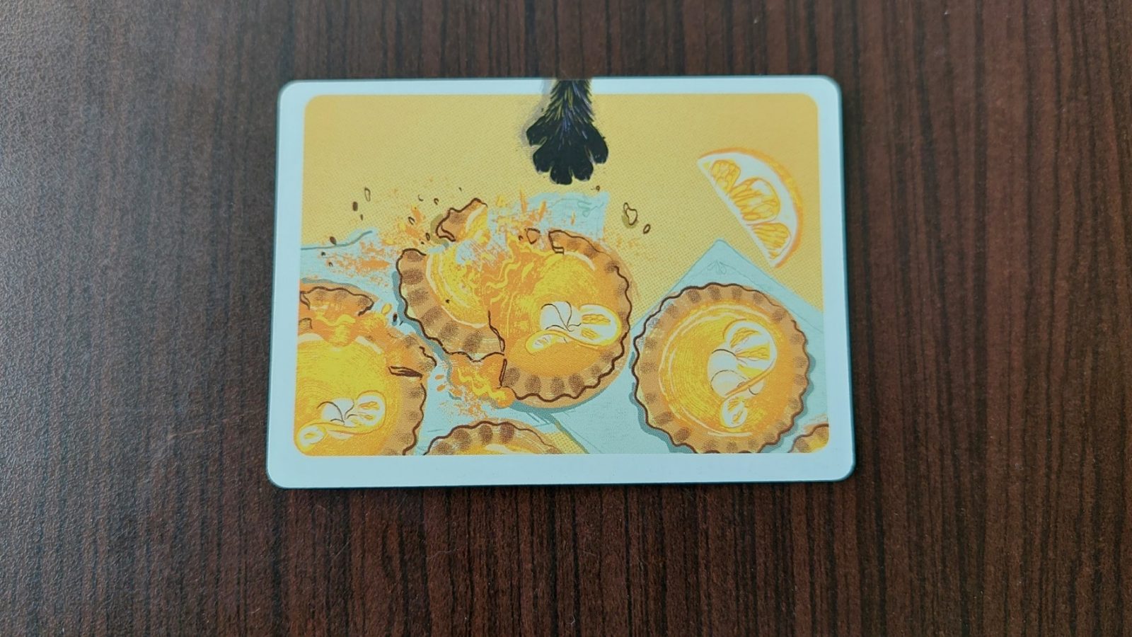 After scoring, before the next round begins, the player in last place gets to steal any card from any player, ignoring any special effects. I don’t think this changes the outcome of the game very much, but it does provide a minor satiating vengeance. To start the next round, the next scorecard is flipped over and the bake rack is laid out once again. At the end of the third round, the game is over. Only three of the game’s four scorecards are used, adding variety and chance to each game. And that’s the whole game! Well… except for the most important part.
