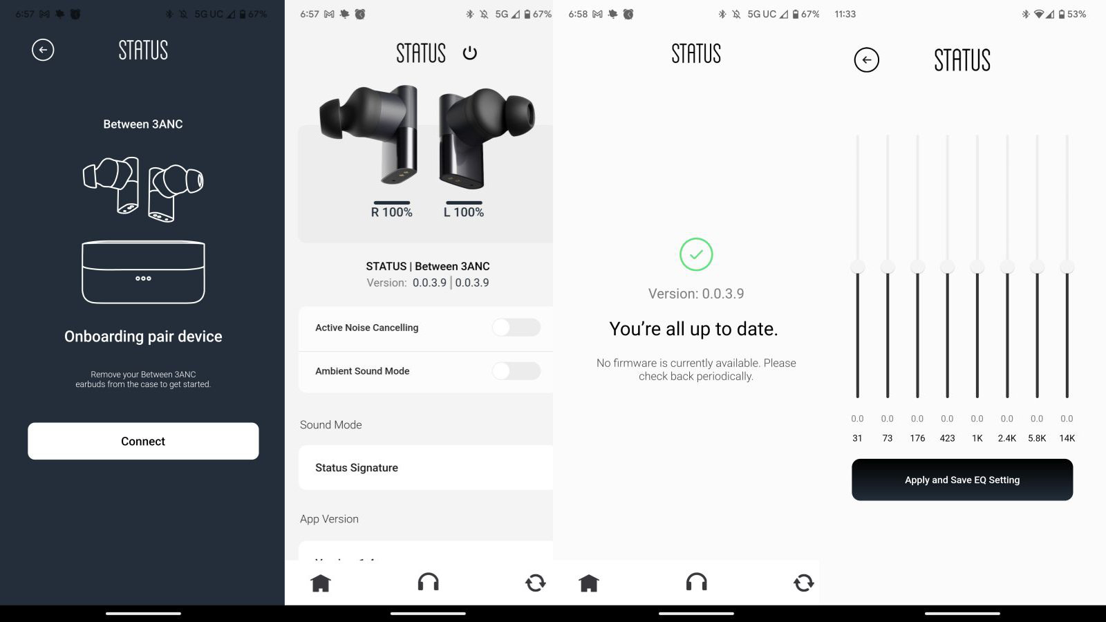 Heading into the app (both iOS and Android are supported), a wide variety of adjustments and status indicators. The aforementioned Active Noise Canceling and Ambient Sound Modes can be toggled here, though they can obviously be enabled with a button press on the device as well. You can also see the firmware revision the devices are currently using, as well as something called “Sound Signature”. Sound Signature can make these devices sound like the Status Audiophile, or the original Between Pro devices. These are simple sound profiles, but if you want to really tweak the sound, you’ll want to avail yourself of the custom EQ. With eight individual frequency ranges to adjust, you can make the sound just about any way you wish. You can then save these as presets, keeping multiple for different listening cases.