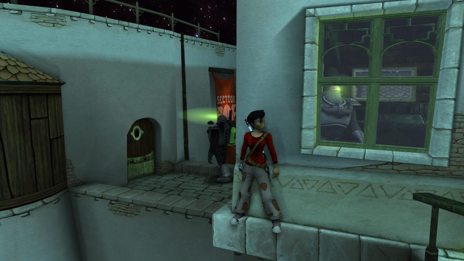 You play as Jade: photographer, reporter, martial artist, and caretaker of children orphaned by the war against the extraterrestrial Domz. Money is tight, and with Domz attacks increasing in frequency on planet Hillys, she needs a job that pays well. When a mysterious opportunity arrives from a Mr. de Castellac, it’s hard to say no. Alongside her uncle Pay’j, Jade will prove to Hillys that their only defense against the Domz, the Alpha Sections, are really in cahoots with the aliens.