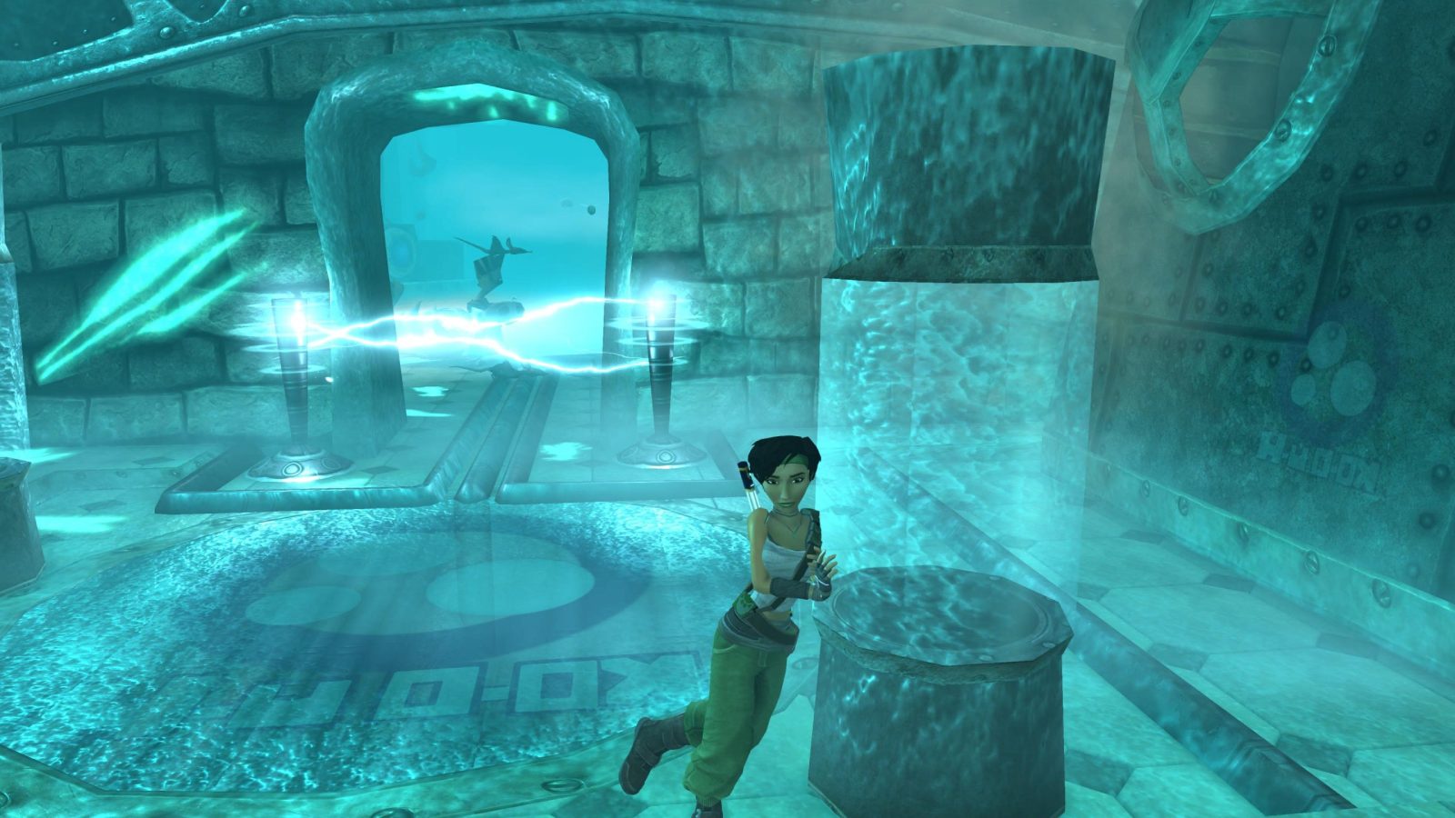 I consider BG&E to be something of a Zelda-like. You explore an overworld (in this case using a hovercraft to reach different islands) to enter dungeons where the real meat of the game takes place. In these dungeons, you sneak past Alpha Sections guards, engaging in combat when needed, and solve puzzles on your way to each incriminating photo. Jade and her companion will gain new abilities along the way too, like a glove that allows you to throw discs to hit switches and enemies, though there aren’t many of these. Instead, the game is short and sweet with only a few, yet very unique dungeons. The first will have you rerouting electricity to turn on a central elevator, while the next requires you to explore outside in the hovercraft to reach different areas. It’s all very smartly designed, with no single idea overstaying its welcome outside of exactly one room that still frustrates me to this day. Even then, that’s a fun stealth puzzle to figure out, and the game really is just a delight from start to finish.