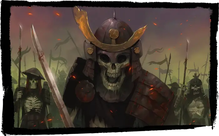Beyond that, there are also new options for advantages and disadvantages that are specific to the Shadowlands, which have some fairly creepy implications. For example, you can take the advantage of “dead eyes,” which means your character has seen so many terrible things that they’re no longer very vulnerable to fear. Or you can take the “Shadowland Taint” disadvantage, which means your character has been corrupted by the evil of the Shadowlands, giving her leathery corpse-like skin and other downsides. And of course, you’ll also find new heritages, equipment, and techniques geared around playing in the Shadowlands, giving you more tools of the samurai trade to play with.