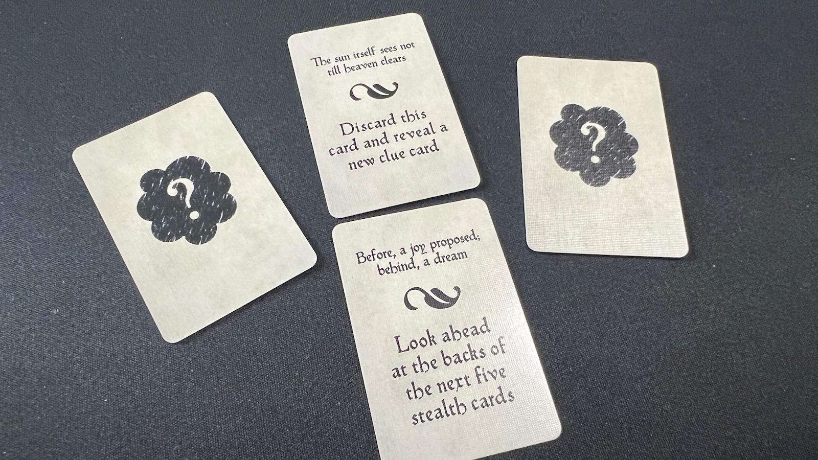 - If a player thinks the lady is at their location, they will take a fog card and replace the current top card of the stealth deck (without revealing the next clue)