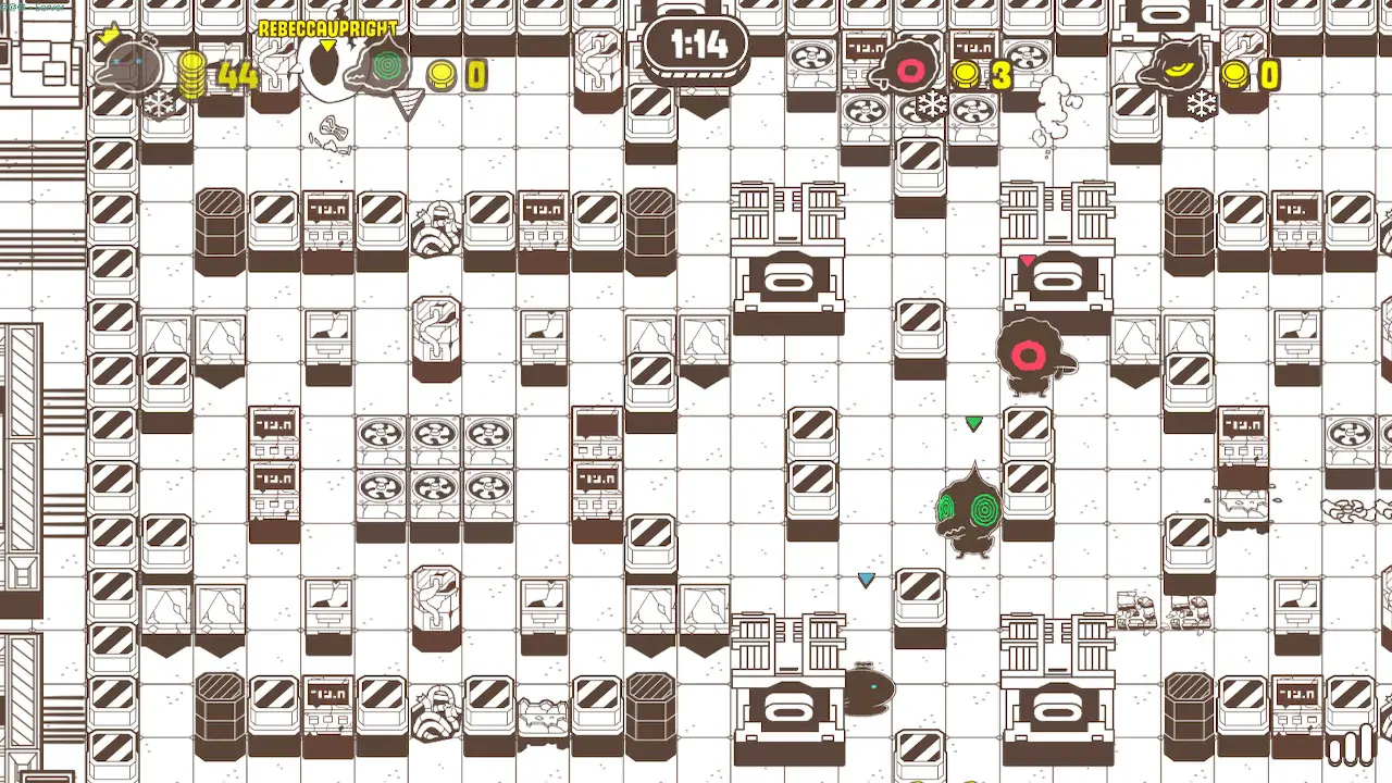 The other two modes are serviceable, though coin steal is the weakest one. It’s basically the same as deathmatch, though now you have to collect the most coins to win. Every time you kill an opponent, they drop a certain amount of coins. Normally, this would be an inoffensive mode that prioritizes quick kills, but unfortunately the fact that you lose literally every coin when you die means that this boils down to, “kill everyone and make sure you don’t bomb yourself by accident.” This mechanic makes the mode less entertaining to play because it’s a very unbalanced risk/reward mechanic that doesn’t pay off until seconds to the end of the round.
