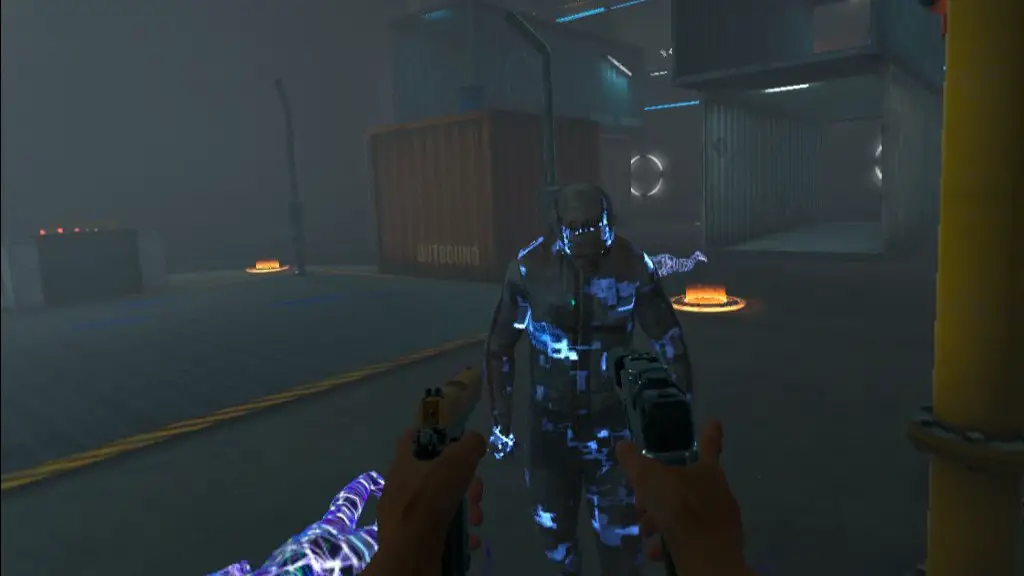The inventory system is a bit strange and is completely unexplained, so allow me to substitute here. You have a total of five Body Slots at various points on your person, with three represented by white circles in the inventory menu and two holsters for pistols. While you can only store small guns in the holsters, the circles allow you to store just about everything else either over your shoulders or behind your hips. For example, I kept a crowbar as my melee weapon and stored it behind the hips. To store it, you simply place the crowbar behind your hips and let go, the opposite to retrieve it. It took me about two levels to figure all of this out, and even then it would barely work most of the time, with the crowbar most often dropping to the floor when trying to store it, and trying to retrieve it usually having the game place my pistol or some ammo in my hand.