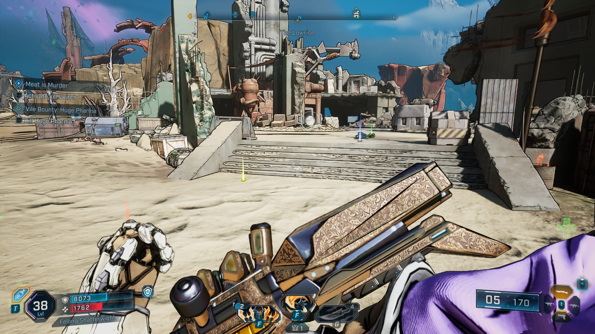 Unfortunately, for everything Borderlands 4 does right, it still feels heavily harried by a range of technical issues and some awkward design decisions. After finishing major story beats, the game requires you to travel back to a zone entrance and activate a zone-swap before you can fast-travel to the major hub you’ll invariably want to access. We also ran into some bizarre instances where the game would recommend different travel paths to our team when going to the same spot, which was particularly bizarre since it would take a teammate up a mountain path while it guided me on a wastefully long loop around the mountain and up the opposite side. Music would occasionally drop during boss fights. There are other times the pathing seemingly doesn’t show up at all.