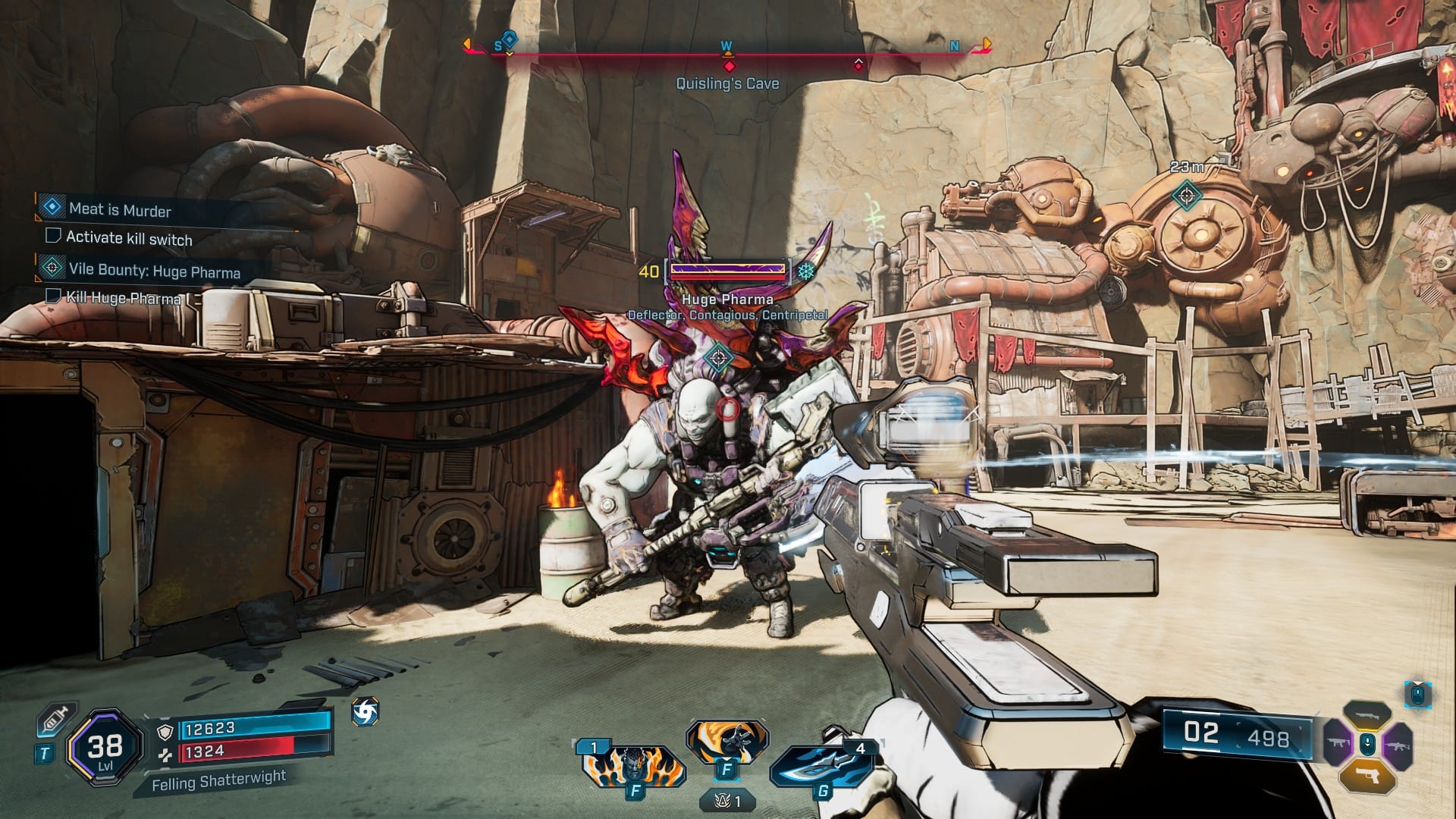 Speaking of exploration, Borderlands 4’s Kairos is a massive open world full of sites to see and events to uncover. The game does an excellent job of keeping you engaged with different things to do as you travel. Borderlands 4 gives players the chance to grab vault keys and explore vaults on Kairos, which gives a welcome sense of gameplay meaning to being a Vault Hunter. Order bunkers, which are hidden throughout Kairos, were a neat chance to explore and play around with mechanics that aren’t spelled out for you. The world features several safehouses you can clear out and claim. You’ll always want to do these, particularly since they’re not too difficult and add fast-travel points all over the planet. One thing I got a particular kick out of was the addition of randomly-spawned “world boss” encounters that pop up, each housing a limited-time crack at some brutally challenging enemies. You only get one chance at them, since dying or leaving the bubble causes the boss to de-spawn, but it ramps up the challenge in an exciting way!