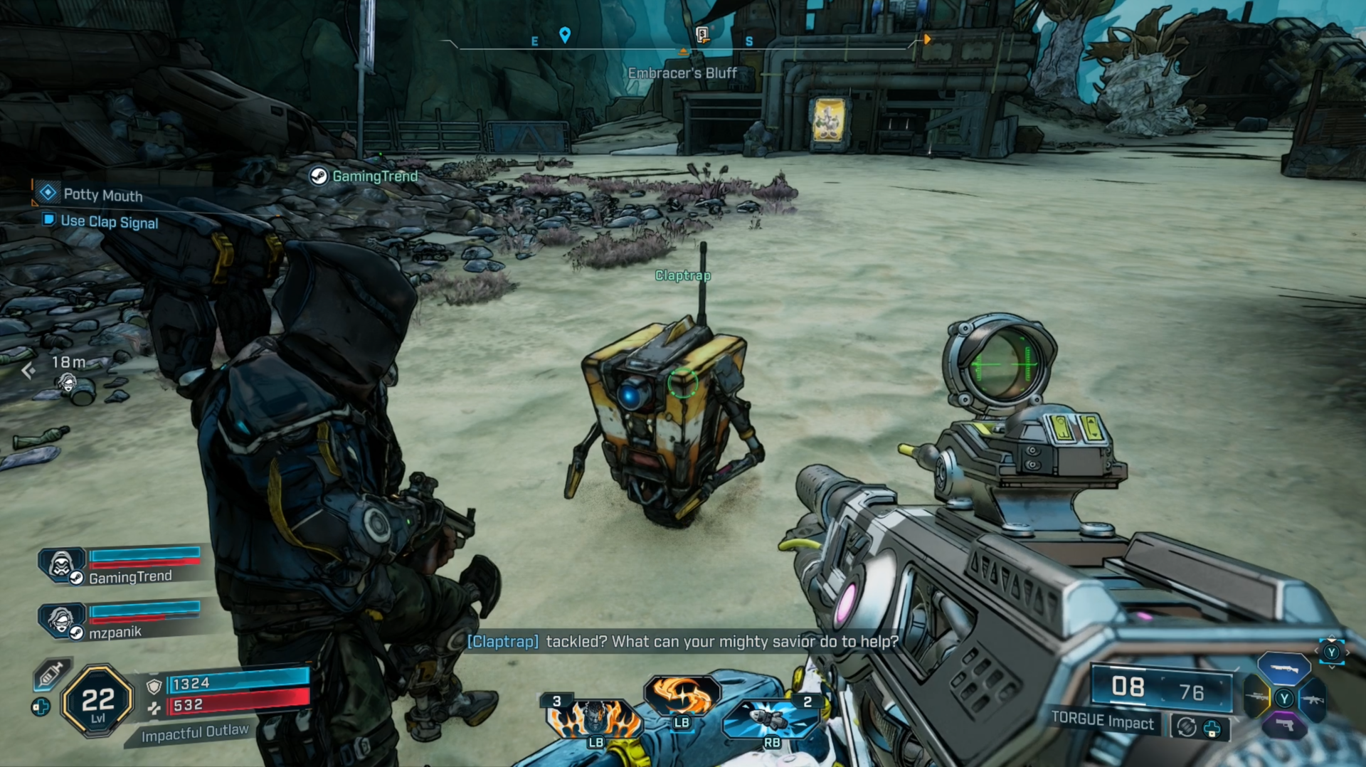 More egregiously, in our time playing together, the GamingTrend team encountered a host of technical issues, all playing on PC. I had an instance where I killed a boss, died immediately, and was spawned in a location the game refused to let the story acknowledge. This required me to fast-travel elsewhere and manually work my way back. One of our team members inexplicably lost several hours of story and character progress when the game rolled back to a previous save state overnight. Spread from the Eastern US to the West Coast, we experienced a wide range of lag issues playing together (and the whole team was playing on gigabit and fiber connections). We even had one instance where we did an Ultimate Vault Hunter weekly mission, sat through all the unnecessary repeat story dialog, and as soon as the game went to reward us, my partner's game crashed, and he was denied his weekly rewards. In a game built around grinding content with other people to sustain itself, these issues are a significant turn-off. Gearbox will release a day-one patch, which will, hopefully, address these issues