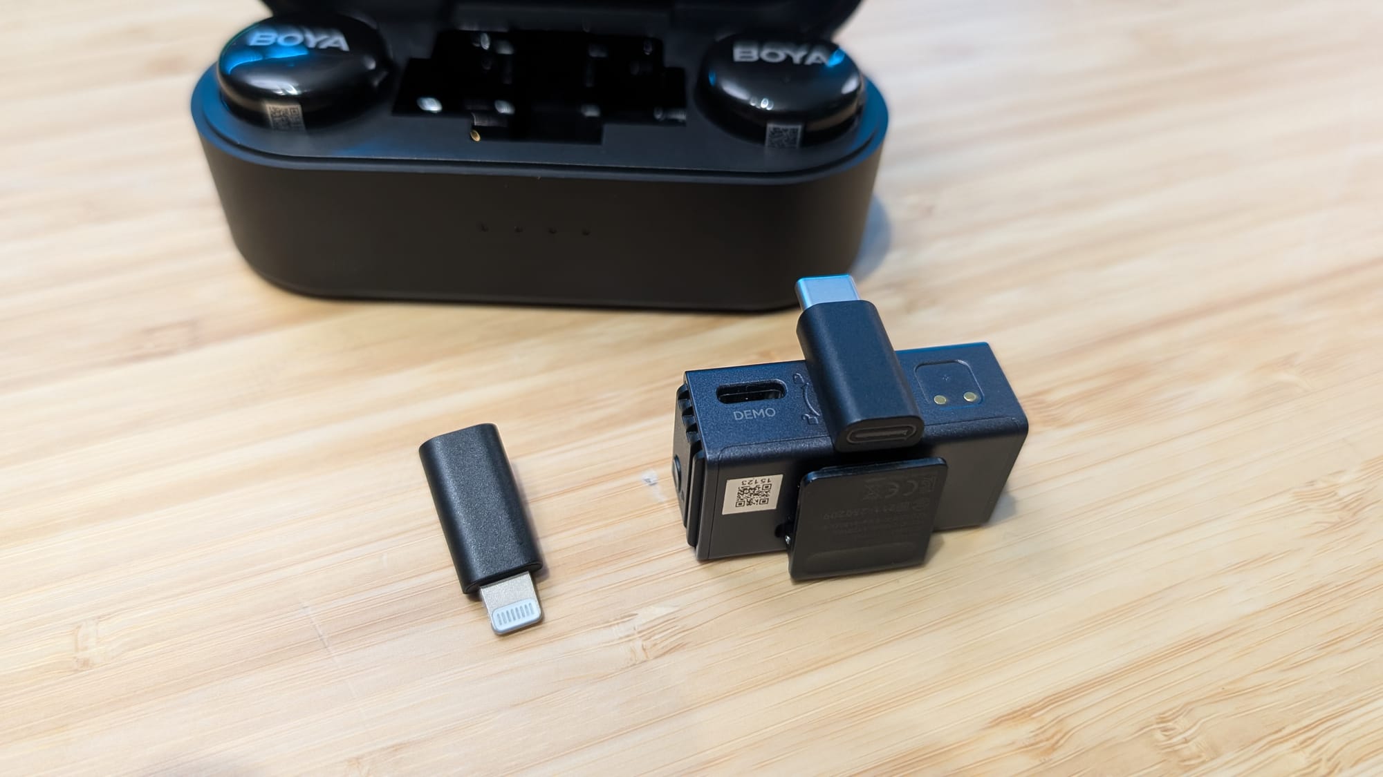 Before we dig into the specs, let’s start with compatibility. Many of the high end manufacturers have moved to a modular system that makes their microphones almost universally compatible, and the Boyalink 3 is no exception. Inside the carrying case (which doubles as a 1500mAh charger – something their competitors seem comfortable charging extra for) is a pair of adapters: one USB Type-C and the other iOS Lightning. That’ll cover just about any modern camera or phone, but if you happen to have an older device, you can also use the included 3.5mm TRS cable to connect the receiver. Rounding out the rest of the contents in the box, you also have a pair of magnetic clips (though you can use the plate underneath the transmitter to use it without the clips), two fur windshields, a USB-C to USB-A data transfer cable, and a soft carrying pouch. Like their previous models, everything you need is in the box. Best of all, it weighs almost nothing – just 9 grams for the part you’ll stick to your subject. This is great news as that’s not nearly enough to weigh down a shirt, leaving your interviewee as wrinkle free as they were when they arrived. As an aside, and it truly is a minor item in the grand scheme of things, there is also a small channel in the bottom of the charge case. This allows you to keep your selected adapter connected to the transmitter and still allows it to charge. This isn’t going to save you any meaningful amount of time, but it will ease the wear and tear of constantly attaching and detaching it. Again, it’s minor but it’s appreciated.