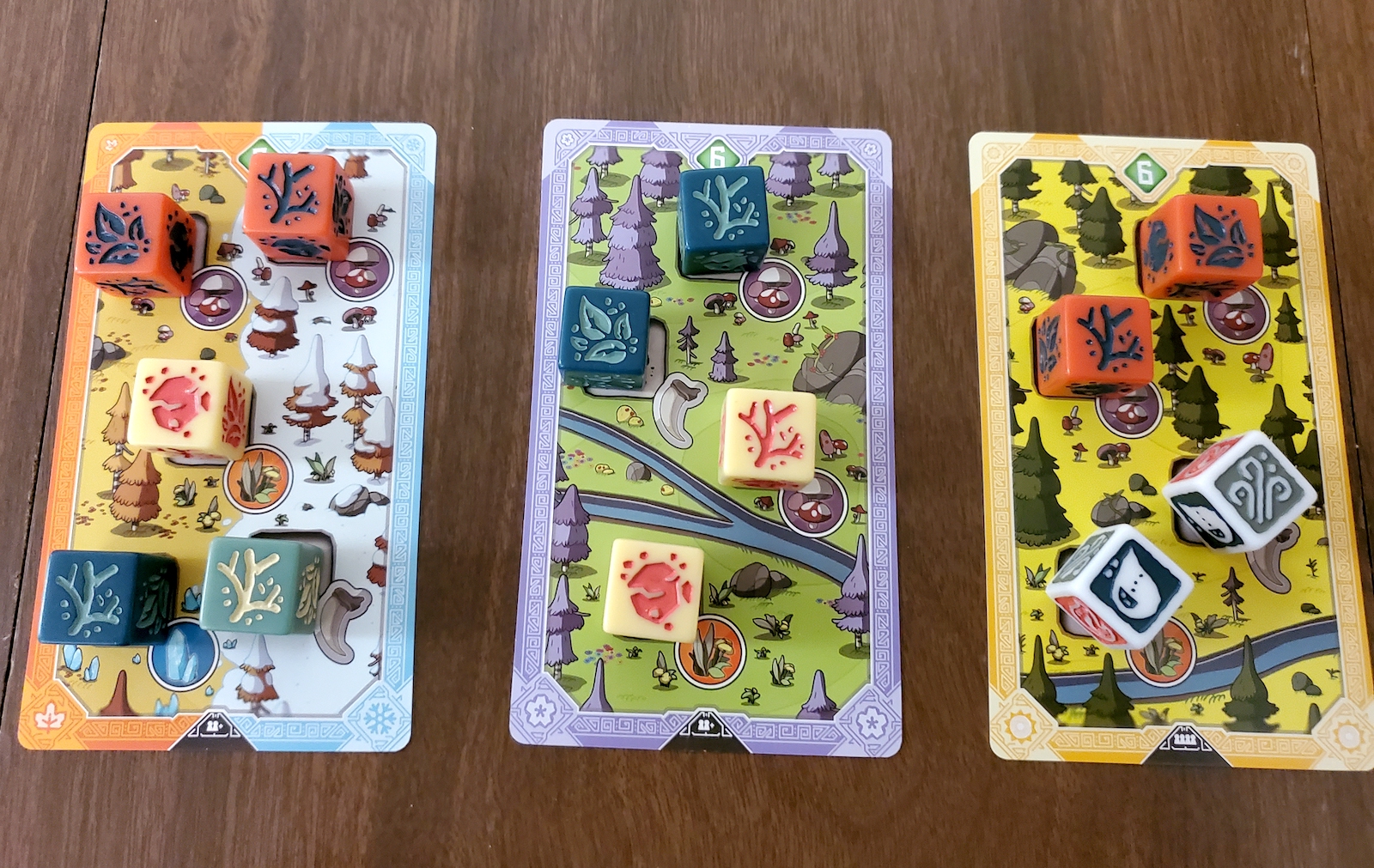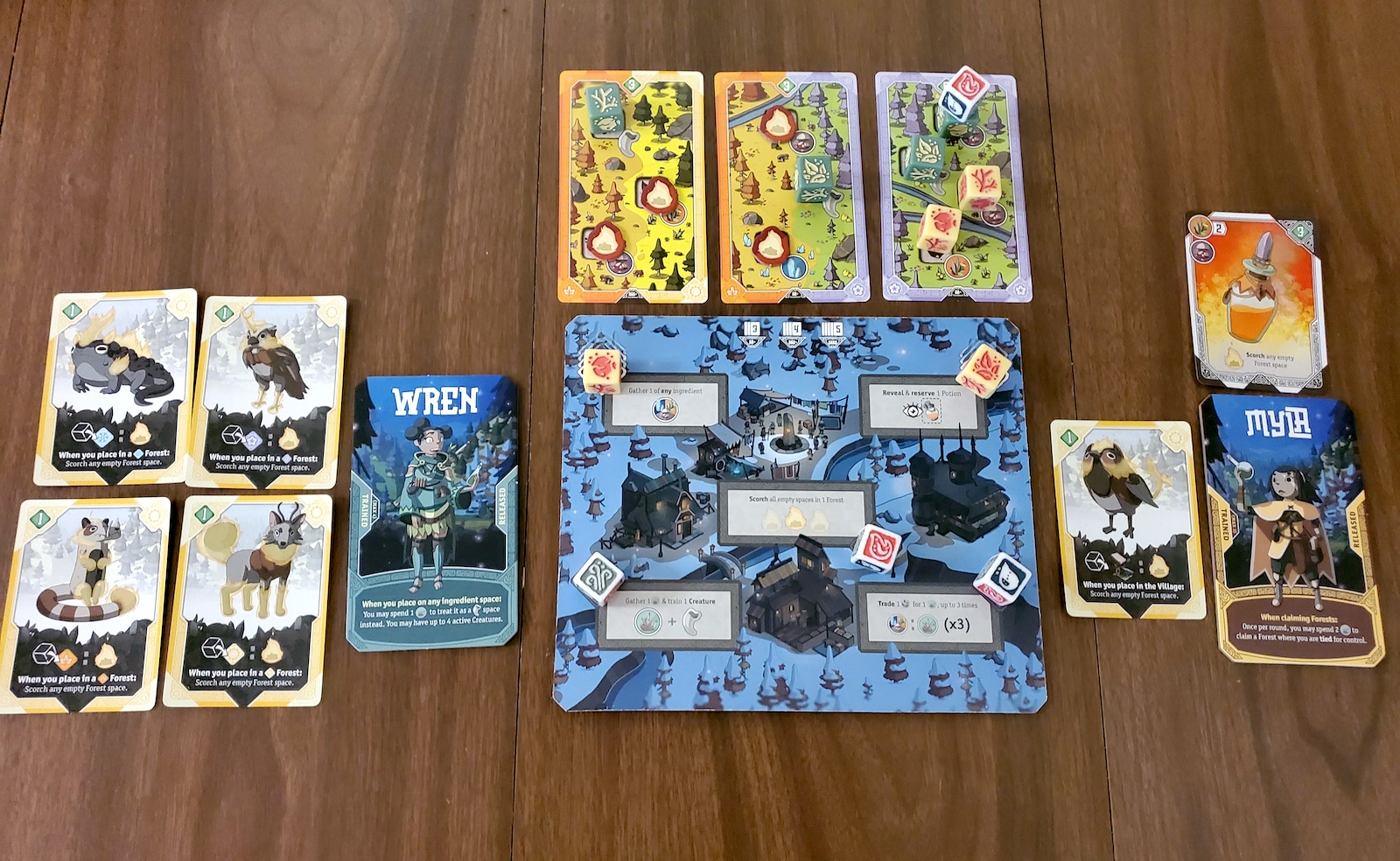 As forests go away and are replaced every round, and placing on forest spaces normally gets you an animal or ingredient; the game feels less like a merge between worker placement and traditional area control and more like a really aggressive worker placement game.