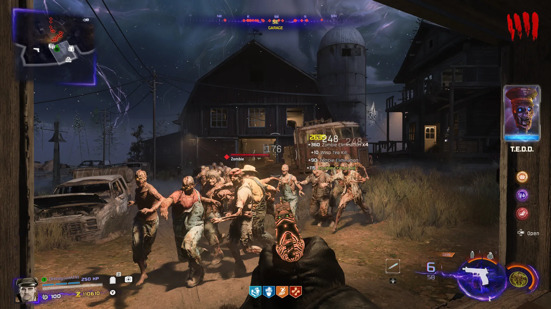 The coolest part about Ashes of the Damned is that it occurs on a persistent map. There are six areas, all connected by dangerous roads that I don’t suggest lurking around. These are locations that have been pulled into the Dark Aether, with some you’ll certainly recognize. Beginning at Janus Towers Plaza – where you ended your time in Black Ops 6 – you’ll have to find Tedd’s head inside a nearby building. After sticking him in a truck, it’s off to the races, speeding to Vandorn Farm, which you’ll remember from the Survival section of the beta, and Black Ops 2.