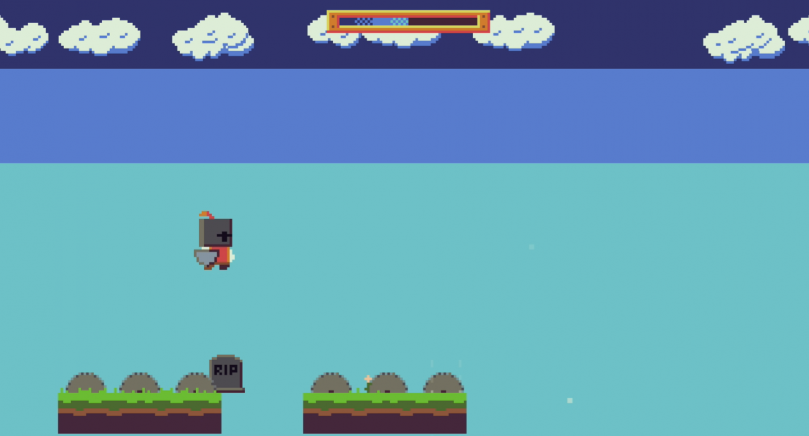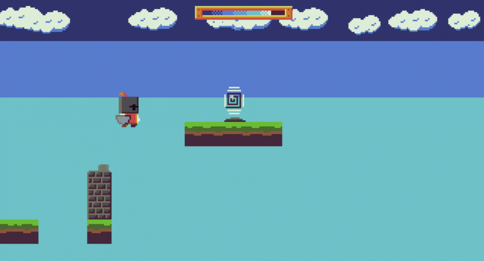 If the obstacles weren’t enough, there’s also a timer for each level. As soon as the level begins, a meter at the top starts filling; sometimes it goes slower, other times it goes faster. If you don’t complete the level before the meter fills, you get electrocuted out of nowhere and die. My guess is that this comes from the evil wizard wiping you out because you’re not quick enough. Some levels have very short timers, so you’ll have to figure out how to move quickly. For example, one level requires you to jump over a moving stone in order to hit a button and make it back under that same stone to reach the exit portal within an extremely short time. I haven’t timed it, but it felt like I had less than twenty seconds to flawlessly pull that off.