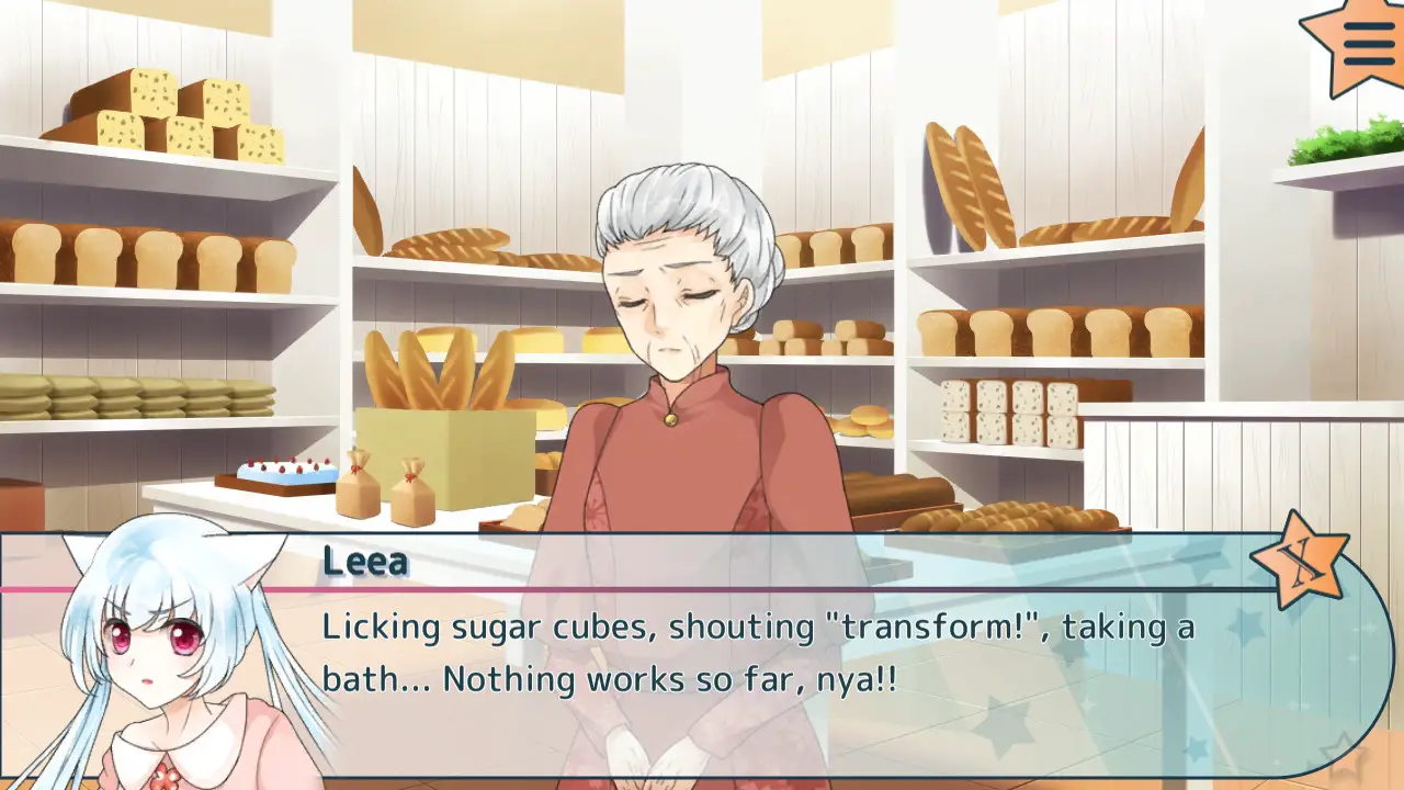 How to Take Off Your Mask Remastered takes place in the land of Eroolia, where the main character Lilia works under her grandmother in a humble bakery. She’s accompanied by mysterious moocher Juli and her childhood friend Ronan, both of whom have this “will they or won’t they?” relationship dynamic. A typical tsundere, she’s conflicted on how she feels about Ronan, but one day she suddenly turns into a catgirl. Well, the appropriate species in this universe is Luccretia, which is a half-human, half-cat hybrid. While there isn’t much fundamentally different other than cat ears and the tendency to purr, the species is ostracized and persecuted by those around them, mostly from the Exile Luccretia Movement roaming around.