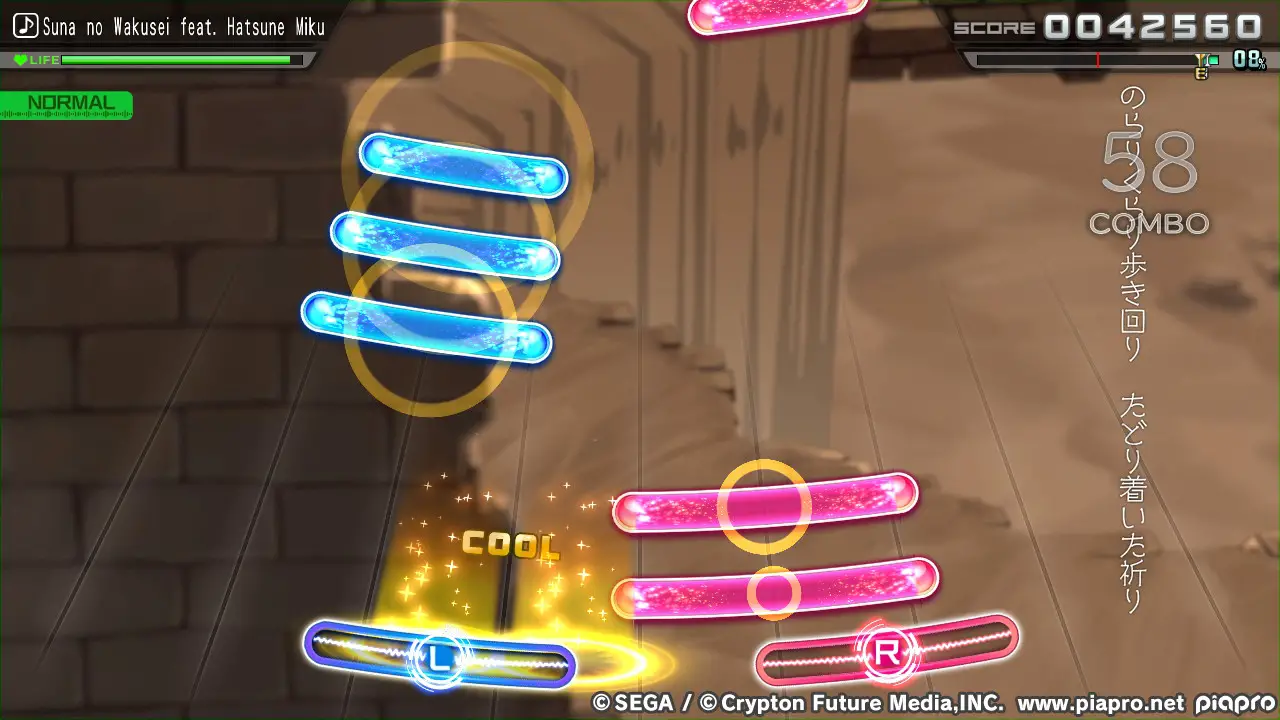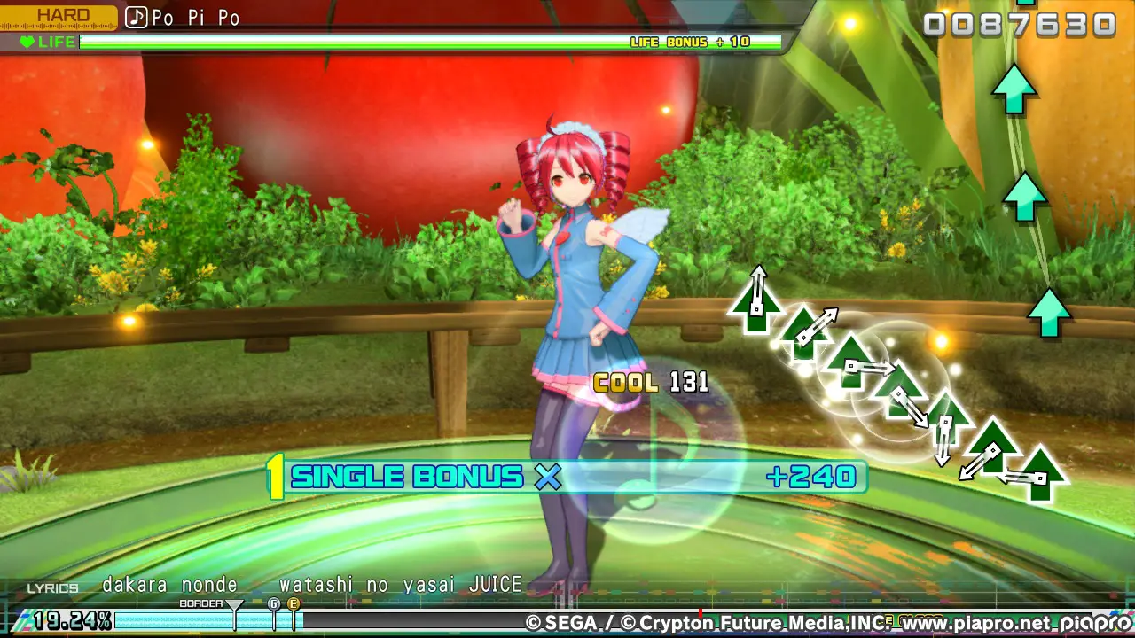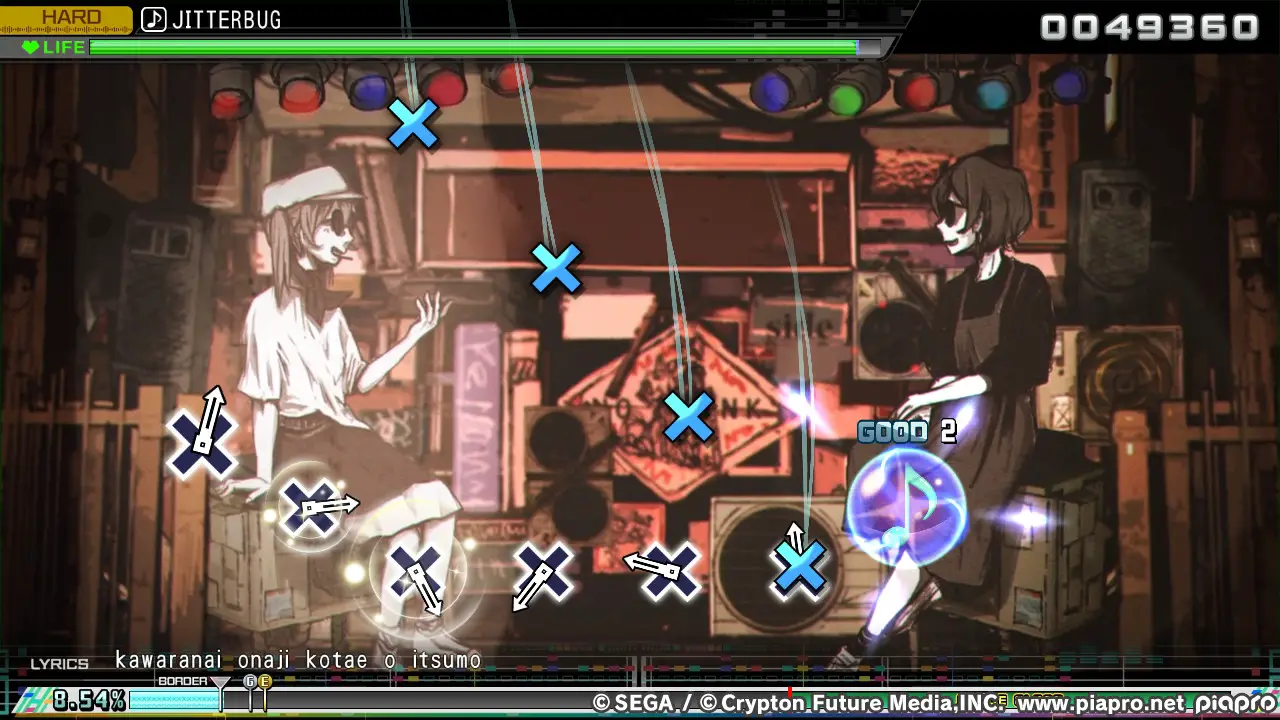 That’s nice and all, but you’re here for the exclusive Mega Mix content. New to this game is the ability to customize t-shirts that your Vocaloid can wear; it’s not the most robust editor, but considering how much we can customize designs in games like Animal Crossing using basic tools, it’s cool that the option is there. You can also unlock other models like Kasane Teto among others, which is a nice bonus for those that wanted to explore other characters than the normal Crypton six. (I just wish we could get GUMI in here; alas, my dream of playing Matryoshka on a console Diva game will have to wait.) You also have ten songs new to the franchise, from the theme song Catch the Wave to my favorite of the bunch, JitterBug. Whatever song you choose, you’re getting some of the best Project Diva has to offer.