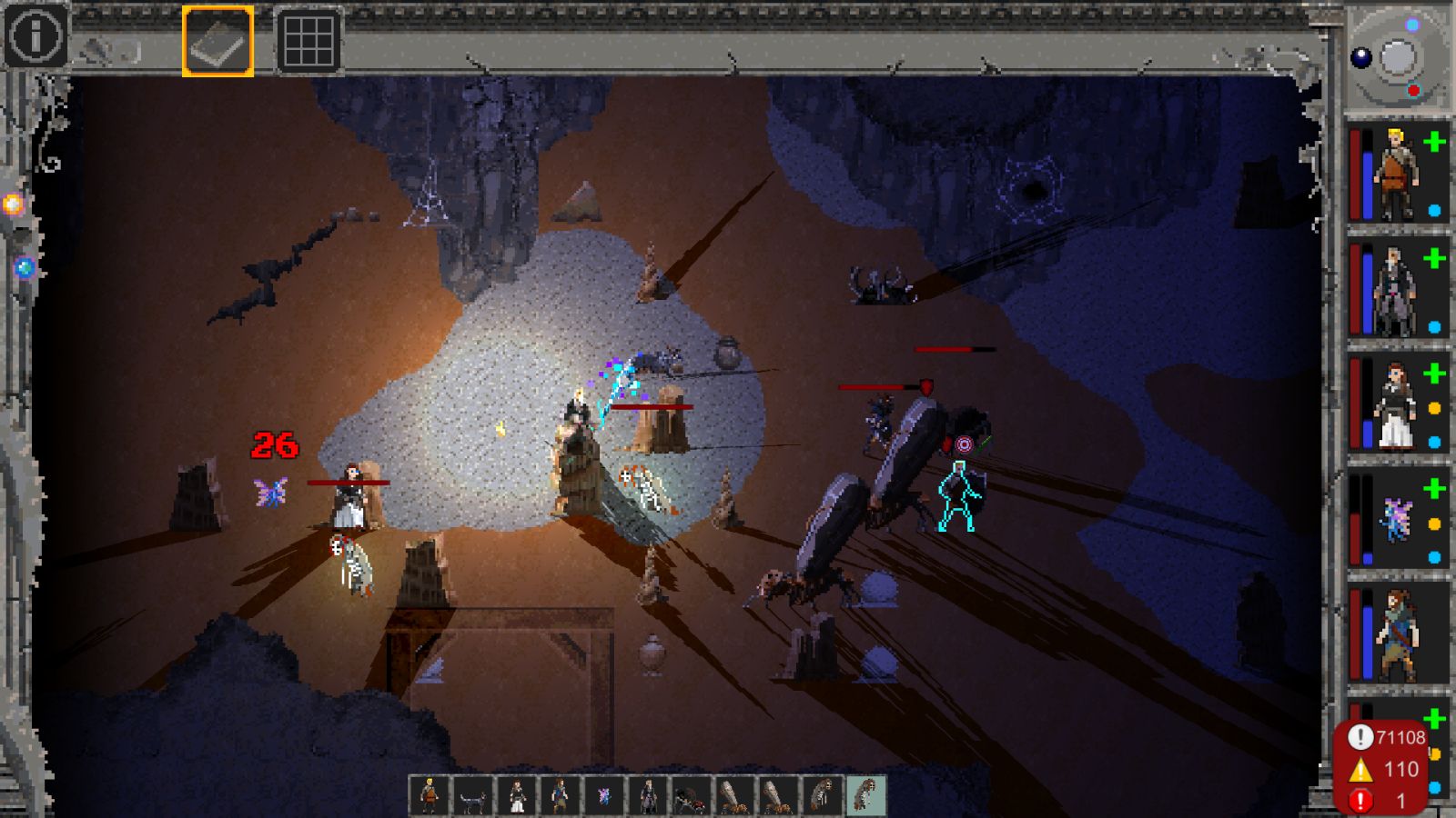 I ran into a few bugs while playing Caves of Lore, ranging from minorly inconvenient to incredibly frustrating. I was already grappling with information overload towards the start, so when my game bugged and my save got overwritten, thus losing an hour of progress, it put a bad taste in my mouth. There were times when I couldn’t heal my party at the campfire despite pressing the “rest until fully healed” button. Another time the game fully crashed. What was by far the most annoying of the bugs wasn’t even a bug at all, it was the response. Occasionally, I would get a pop-up apologizing for an apparent bug, and a request for a screenshot of the situation. Whenever this happens, the Unity debug console icon would pop up in the lower right-hand corner of my screen, partially obscuring the health and mana of one of my party members. In order to get rid of it whenever it came up, I had to restart the game. The real kicker is that I never noticed a bug happening when this message popped up.