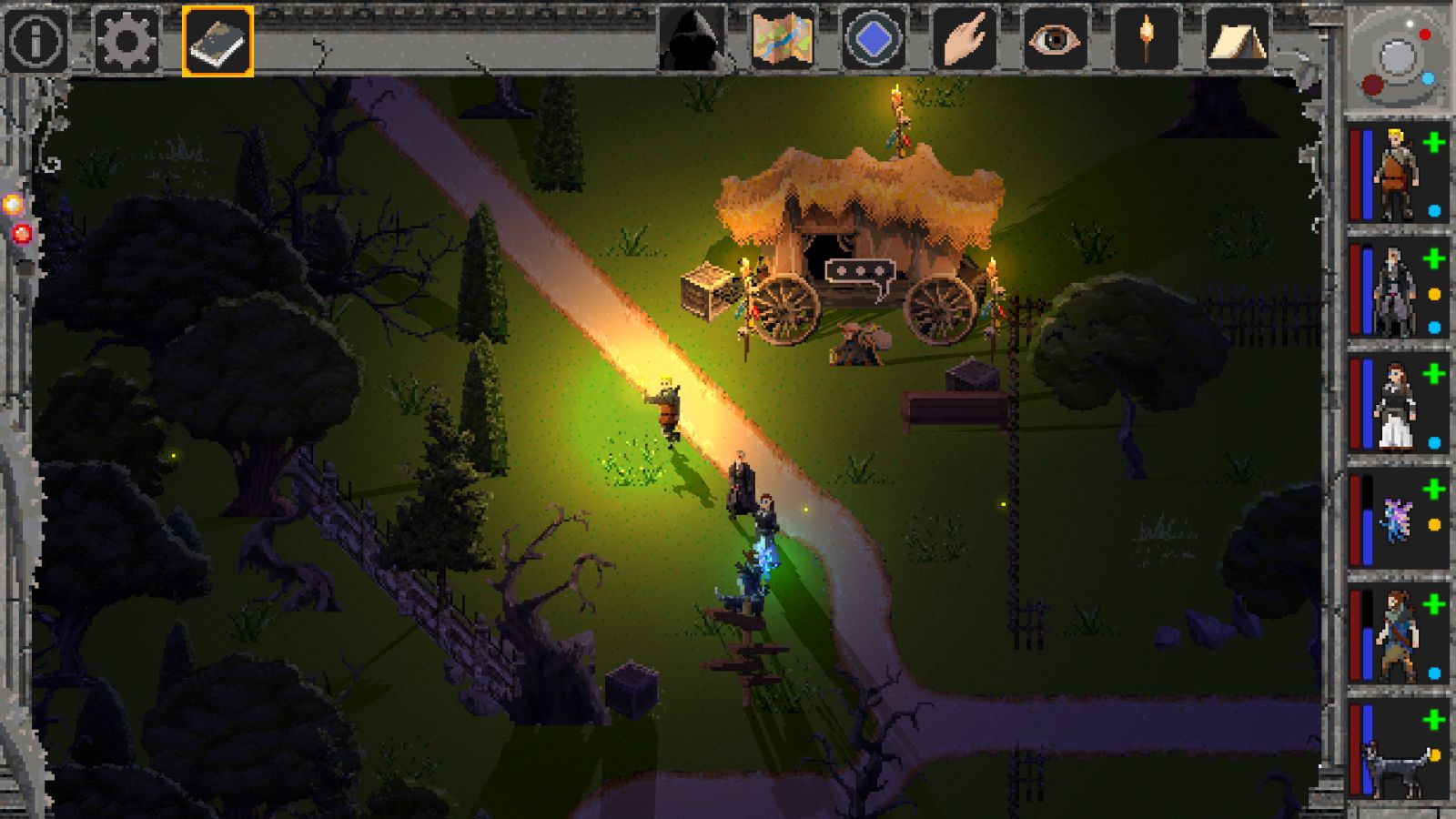 I like this opening; it’s got a few things going for it. First, we have the initial mystery of who our main character is, then we have the mystery of the fog and the odd magical codex we find. We’re introduced to the basics of combat, leveling, and party mechanics. It’s a great start, but this game goes a lot deeper in terms of mechanics. In fact, I would argue the opening’s only sin is that it doesn’t go deep enough, as I rapidly became overwhelmed by all of the game’s other systems. For example, while camping was introduced as a way to heal in a short text pop-up in the opening, it’s not thoroughly explained. When camping, you can assign people to stand guard, play music, and heal wounded party members. In all of my hours of playing, I’m not really sure what standing guard or playing music do. It took me until a few hours into the game to realize that I could heal party members who fell in battle by camping. I was just reloading saves until then.