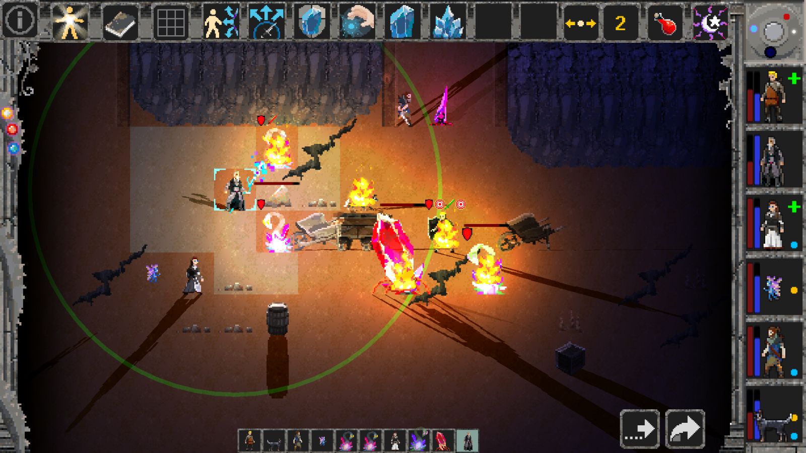Finally, moving on to spells. Party members require specific books in their inventory to cast certain spells. If you remove the book, the associated spells go right out with it. However, if you keep using that spell in combat, the character casting it can “memorize” it, meaning it won’t disappear if you remove the book. I really like this system, as it forces the player to invest their time in a spell without being overly restrictive or punishing. Spells also have their own levels that increase as you use them, giving them higher damage, larger areas of effect, and new visuals. For example, Merewen started with a spell that cast down a small stalactite, which eventually evolved into dropping a massive, blocky boulder. It’s a small visual change, but it really does add to the sense of growth both in terms of power and how far you’ve come with your party. All in all, spells were my favorite gameplay mechanic by far.