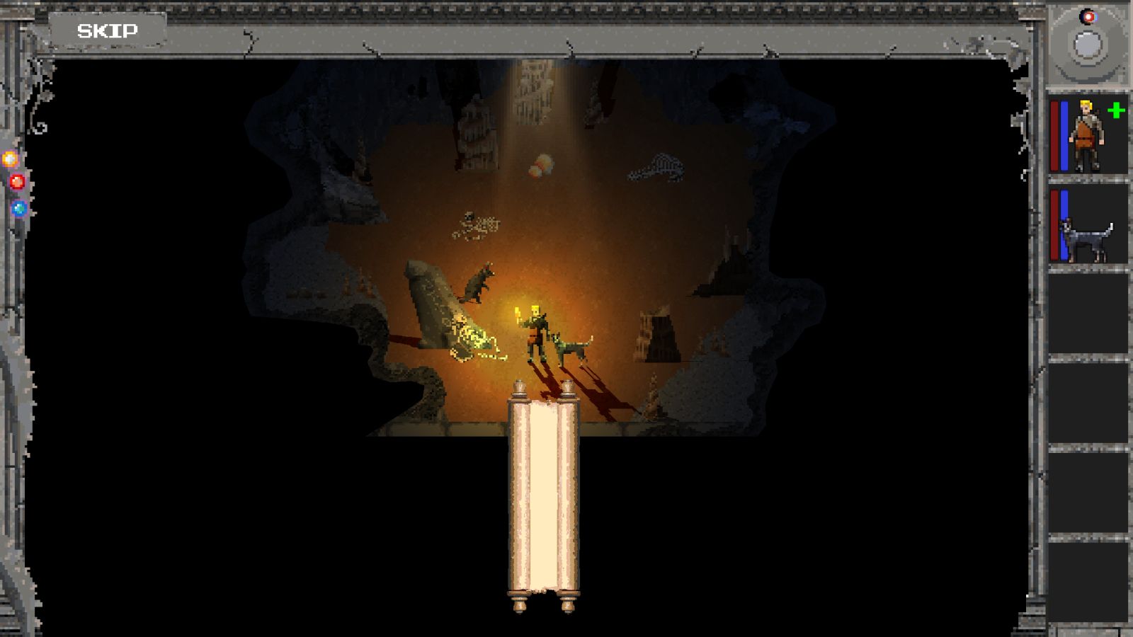 After defeating the rat, we came across a skeleton holding a peculiar codex. Upon looting it, the player is given the ability to perceive magic that’s undetectable by the naked eye, making it possible to progress further into the cave. Just about immediately, a new obstacle arises: there’s a door with a lock that’s too difficult for a beginner player to pick. Here’s where another key gameplay mechanic is introduced, character abilities. Each character in your party has their own unique ability, and in this case, Arbo’s digging ability allowed us to find the key and progress. After pressing onward and punching my way through enough rats to qualify as a biblical-level threat to their species, I eventually came across two new party members, Merewen and Rycard. Upon speaking with them it quickly becomes clear that you’re not the only one with amnesia; it’s a problem plaguing the land thanks to the mysterious fog. With your initial party set, it’s time to escape from the caves you’re in and venture forth into the world above to uncover the mysteries of this world… and then into more caves!