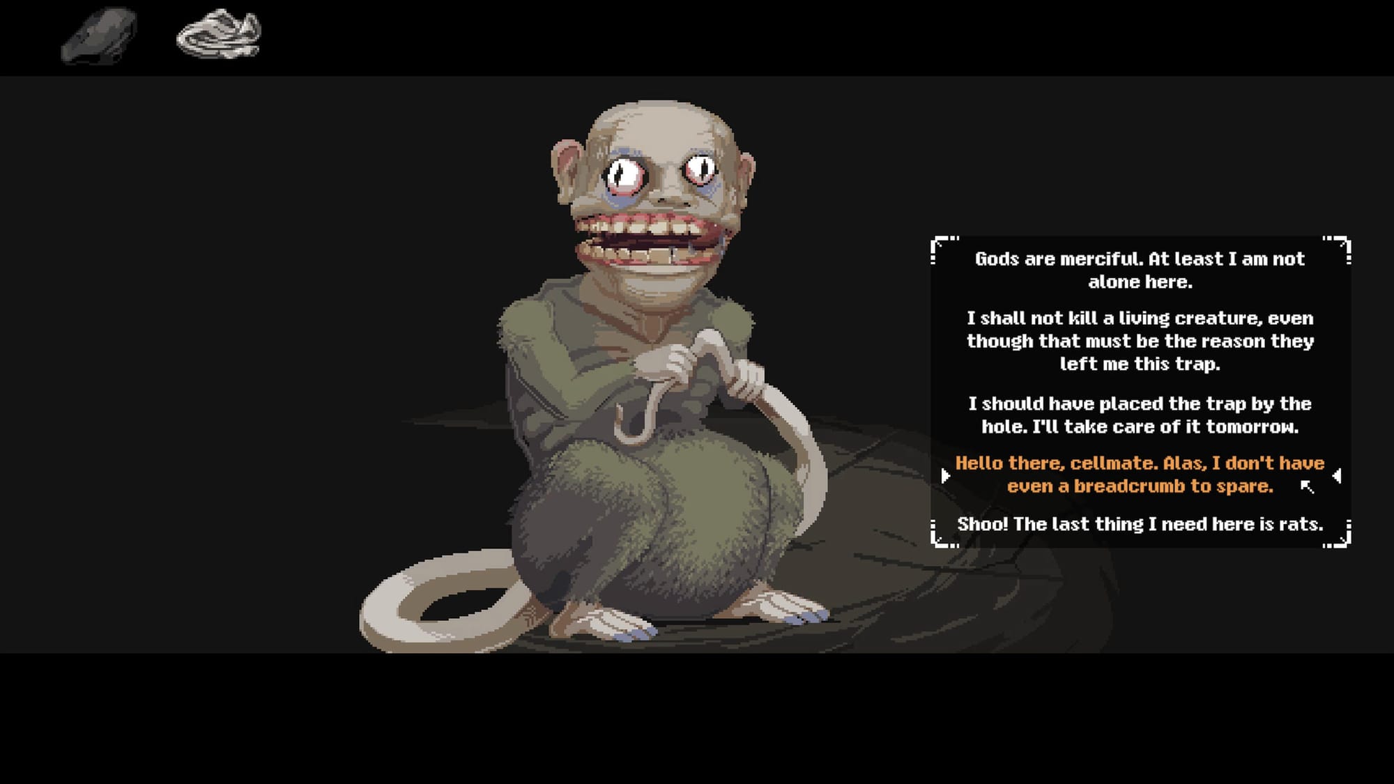 You aren’t alone in this strange land however, as you’ll encounter all manner of people and vermin of which to converse with. While I did generally find the writing to be fairly interesting, the poetic nature of dialogue and narration often left me without a clue on what was really going on. It's less eloquence and more confusion, as long strings of dialogue wax about the mercy of gods or musings of lies, free will and life. I regret to say it put me teetering on the edge of boredom at times, but thankfully never fully pushed me over that cliff.