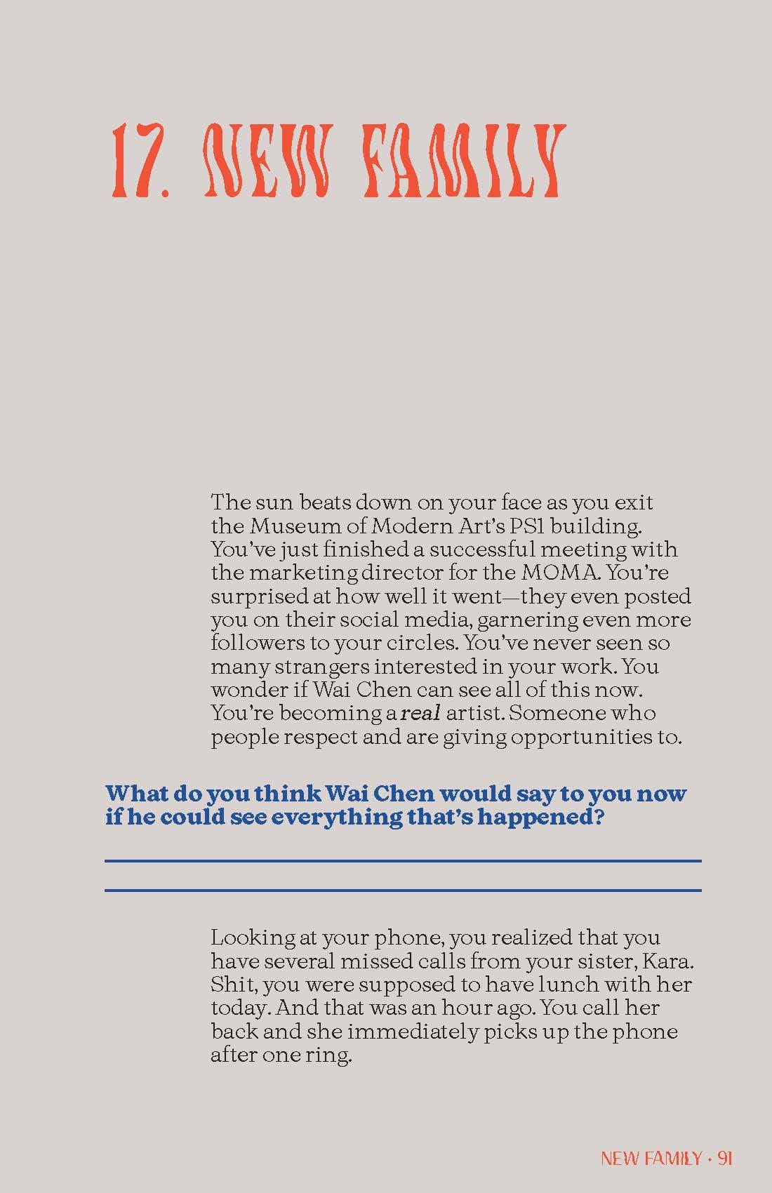 As you read through the book, Banana Chan weaves a wonderful story about your character, alongside artwork to help expand the world. Like a classic Choose Your Own Adventure, in each section, there are questions that you answer which then send you to different sections of the book; for example, in Chapter 21, you and a character experience a supernatural moment in an art gallery. The questions that you answer build more narrative, creating character motivation, and building up a future. At the end of the chapter, you skip 2 chapters, and go straight to Chapter 24, which is one of the final outcomes of the story. As another example, as you start making color choices on the coloring book page, new narrative options appear according to the usage of warm, cool, or neutral tones, which results in different chapter pathways. Much like a “Choose Your Own Adventure” book, this is where replayability comes in, although considering the subject matter, you might want to take a breather after this first time playing. And at the end of the story, you have a fully colored-in demon, which reflects the choices you made in the story.