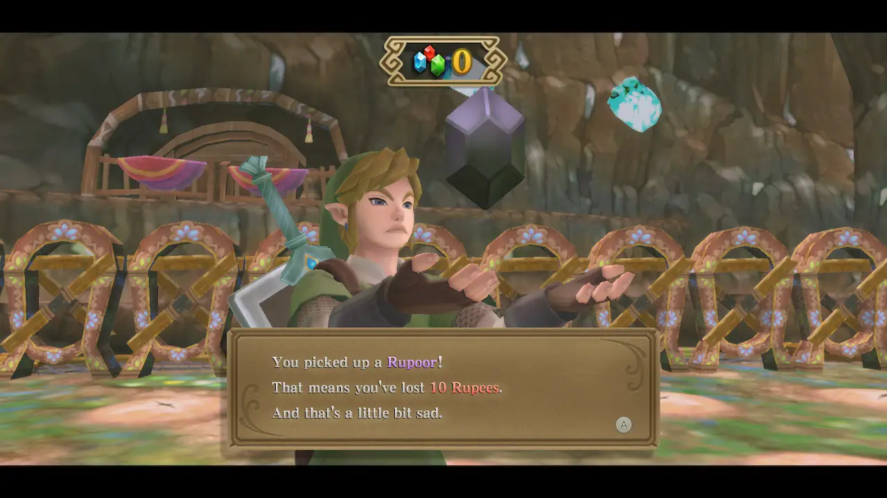 I don’t usually talk about price, I prefer to judge a game on its individual and artistic merits outside of capitalism, but Skyward Sword is bafflingly expensive. You’d expect a remaster to cost less than the original did at launch, since it’s basically an improved version of the same game, but in this case the HD version is $10 more than the Wii. A massive quality of life improvement in the form of instantaneous fast travel is further locked behind a $25 amiibo figure, which is frankly shameful. There were several times throughout my adventure I thought “jeez, this would be much more convenient if I could find/afford that amiibo, too bad they intentionally make very few to keep demand artificially high.” This should have been part of the game, with the amiibo changing your Loftwing’s color or something, not putting an entire convenience feature behind a paywall.