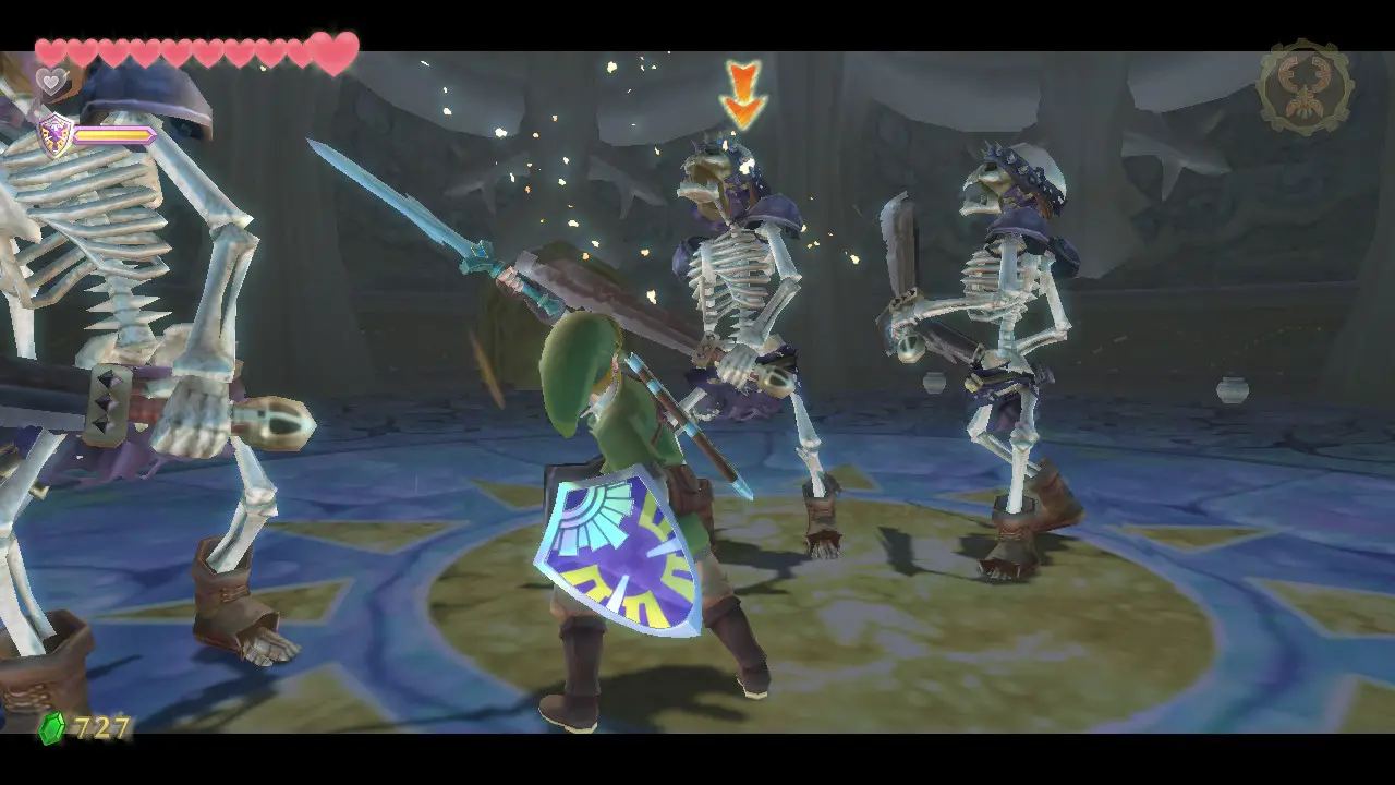 Skyward Sword was designed around 1:1 motion input. You swing the Wii remote left, Link slashes to the left. This is integral throughout the entire game, with just about every combat encounter and puzzle requiring precise inputs. Wii Motion Plus was heavily dependent on a lack of wireless interference to function properly, so some people simply couldn’t get the couldn’t get the controls to work. To remedy this and allow for portable play, Skyward Sword HD presents players with two control schemes: button only (which uses the right stick for “motion controls”) and dual Joy-Cons (which works the same as the original). Since I play mostly in portable, the majority of my time was spent with the button controls. This works really well and is pretty comfortable, especially when enabling motion aming in button mode for that extra precision, though it isn’t without a few issues.
