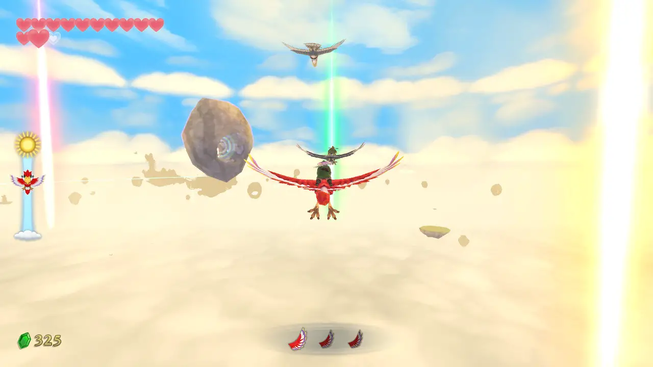 Speaking of Loftwings, the skies above the surface remain simultaneously cramped and empty. As far as I can tell, there have been no adjustments made to your bird’s slow flying speed so it takes just as long to get wherever you want to go. There’s also not much to see and do in the sky, with HD adding no new content whatsoever, so it remains a simple form of travel despite its potential. That being said, the actual act of flying around is still very fun and much easier with button controls, I just wish there was a little more to see and do.