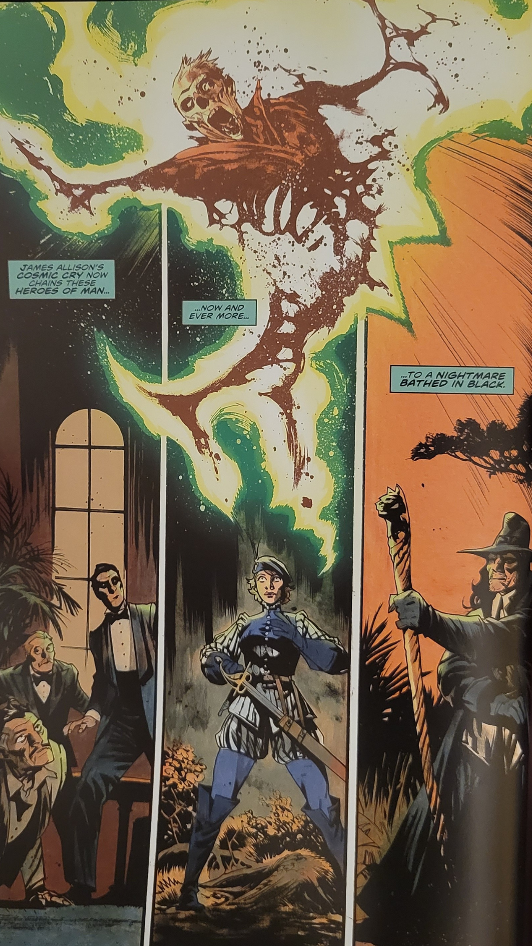 Adding to this is the fantastic artwork by Jonas Scharf. Whether it’s the intensity in Conan’s eyes, the stoic graveness of Solomon Kane’s demeanor, or the fearless ferocity of Dark Agnes de Chastillon, Scharf’s illustrations showcase the characters’ personalities just as much as Zub’s writing, making them feel real. The same goes for the story itself. Whether it's the sinister air surrounding their horrifying enemy, the warmth and lightness of tender moments between the characters, or the chaotic intensity of battle, Scharf nails it every time, adding a layer of emotion to the panels that dialogue or actions alone can’t.