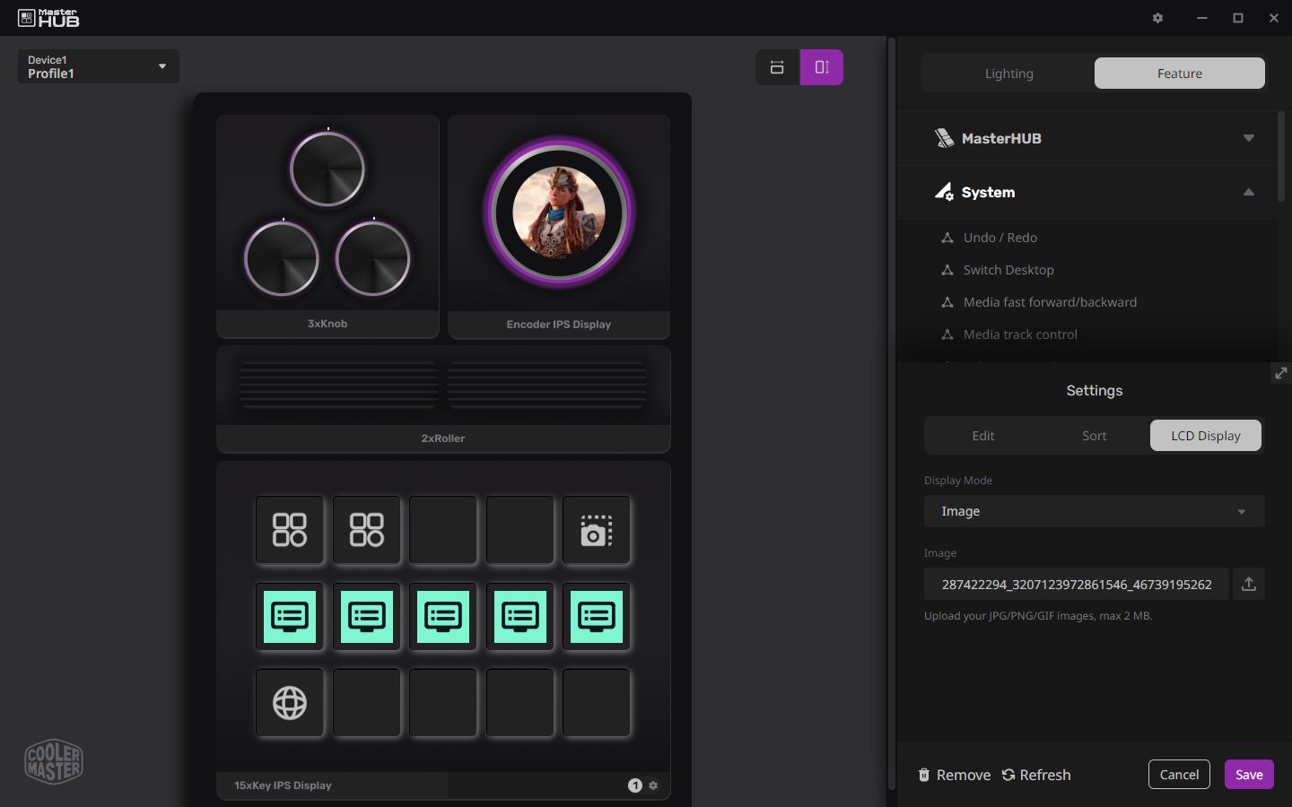Customization is certainly what Cooler Master is going for, and beyond just the modular parts is the RGB lighting and the module personalization. RGB is currently available as a strip around the base plate, and around the bottom of the three knobs if you have that module. These can be individually controlled, or as a unit with a few color and illumination options. The ISP displays also have their own personalization, like being able to add your own icons on the fifteen key module, and even dropping an image onto the LED dial module. Making the MasterHUB your own isn’t just physical but digital, and it’s great to have these extra options. Also, the faders showing LED lighting up to wherever you have them pushed is just S-tier aesthetically.