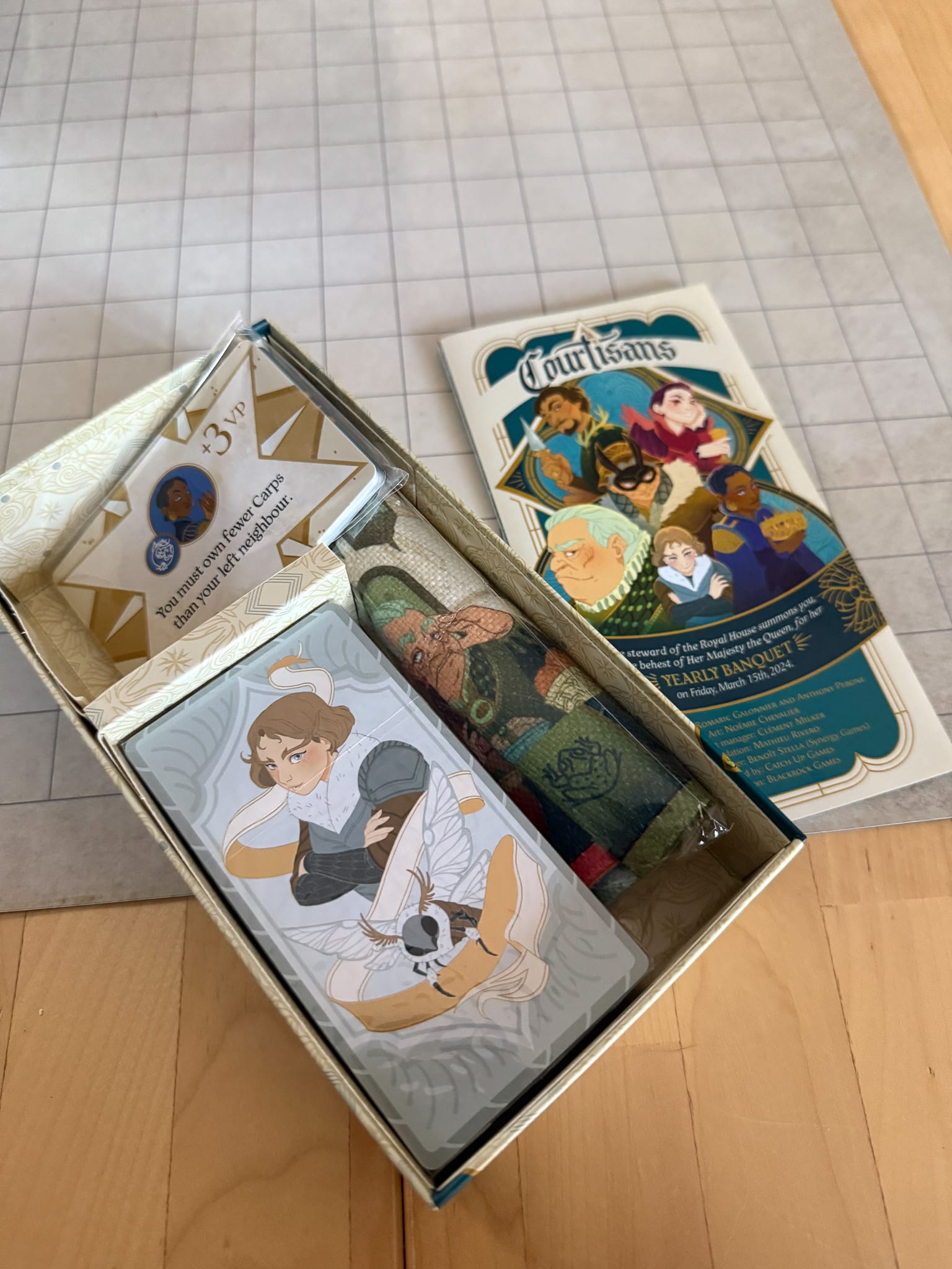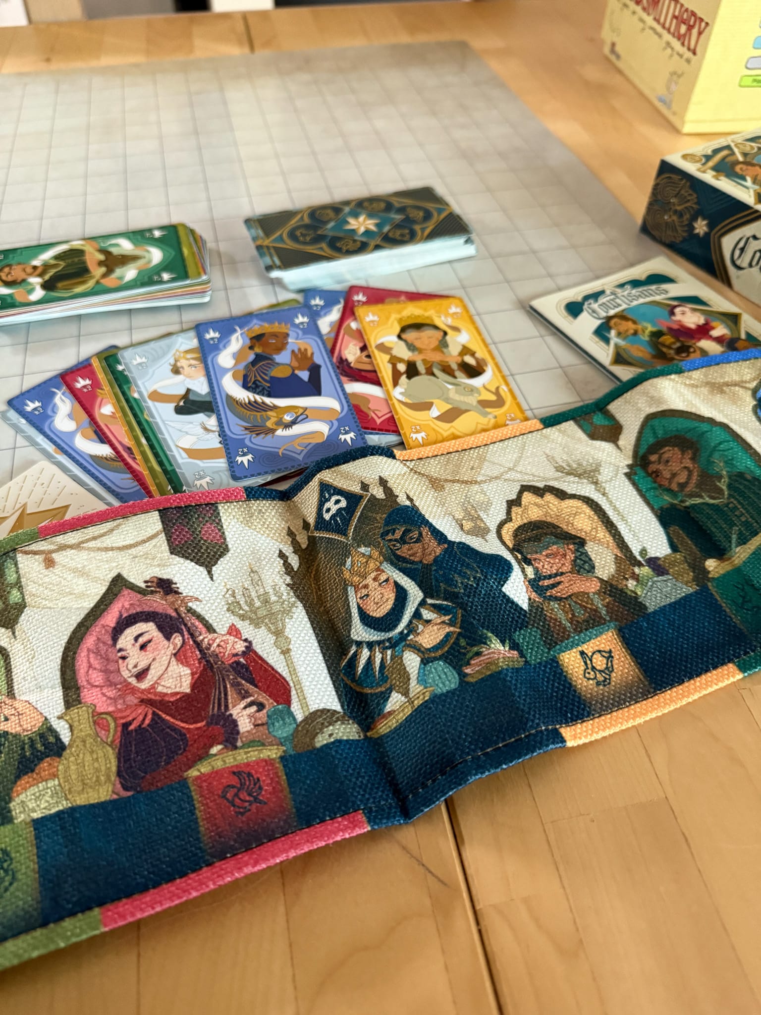 Courtisans is an art forward experience, with rich illustration and nicely made cards, although the cloth mat leaves much to be desired.